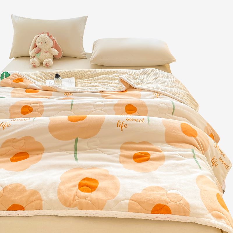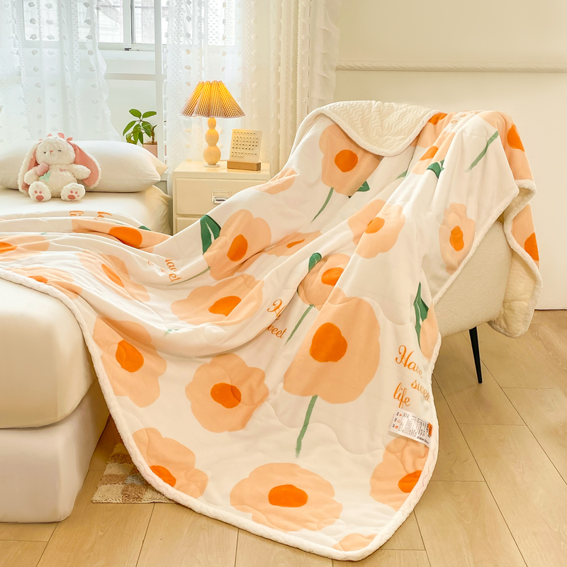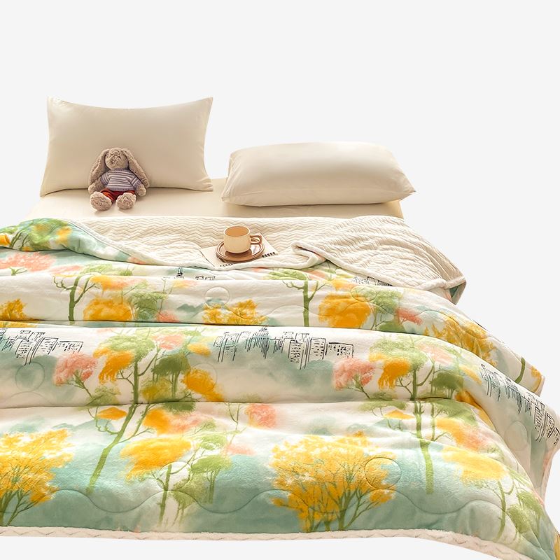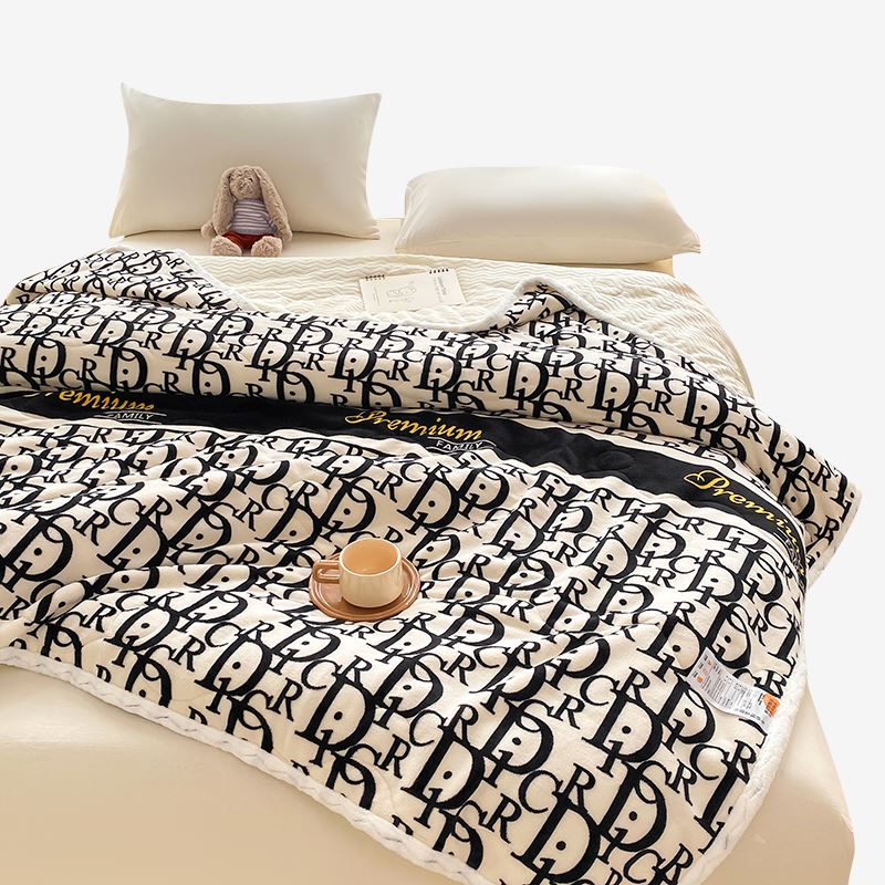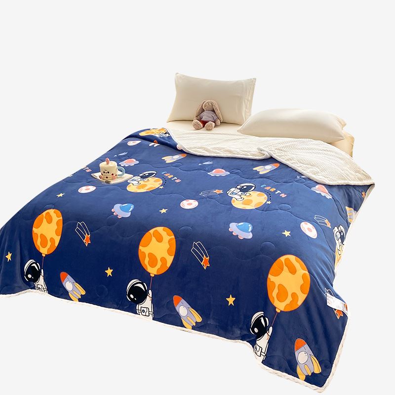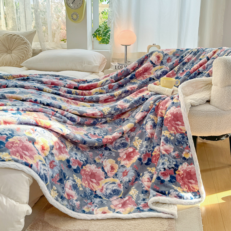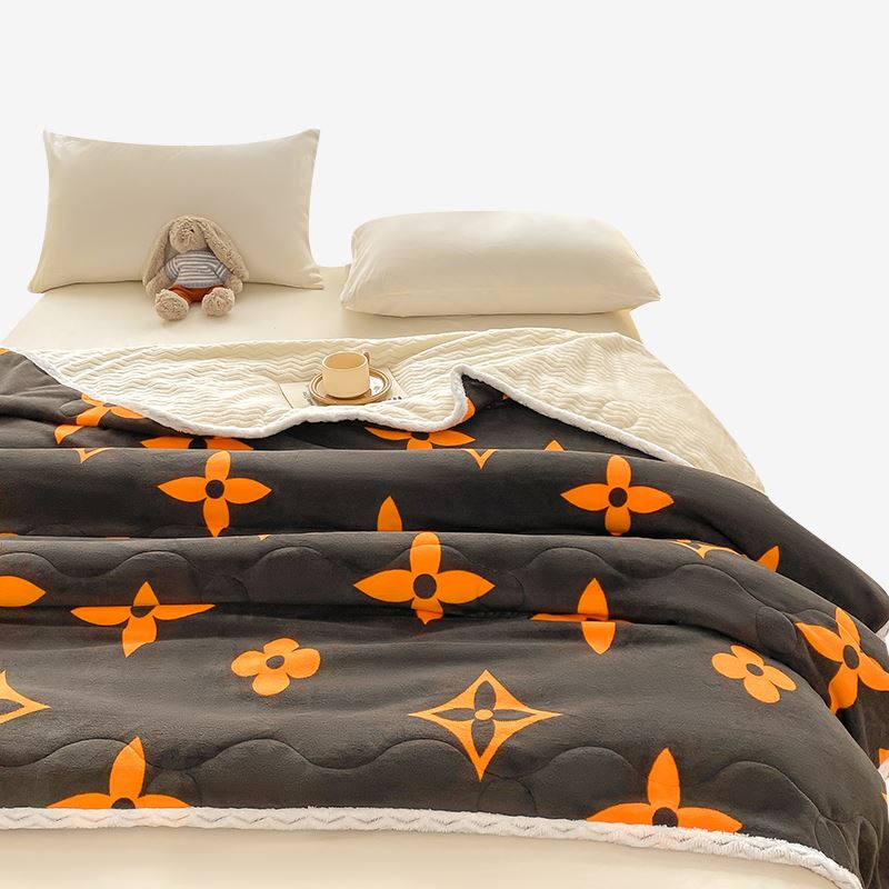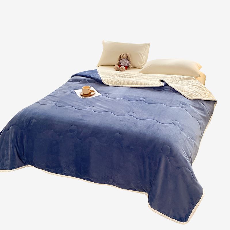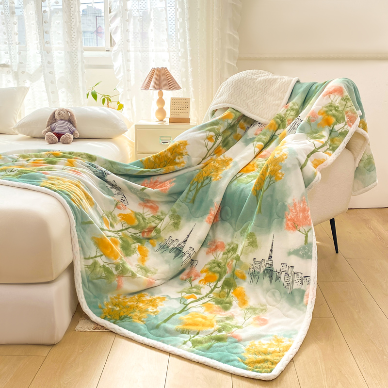 花花公子-家纺-牛奶绒贝贝绒夹棉三层毛毯盖毯