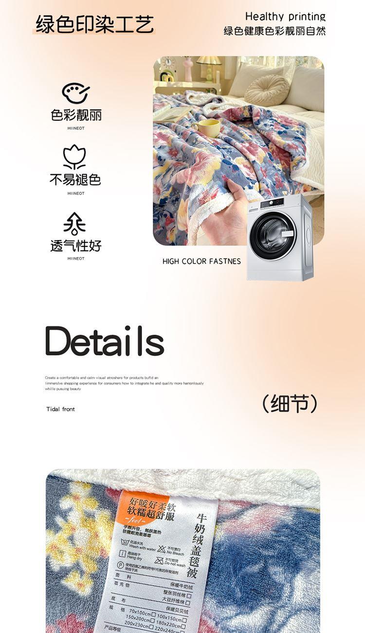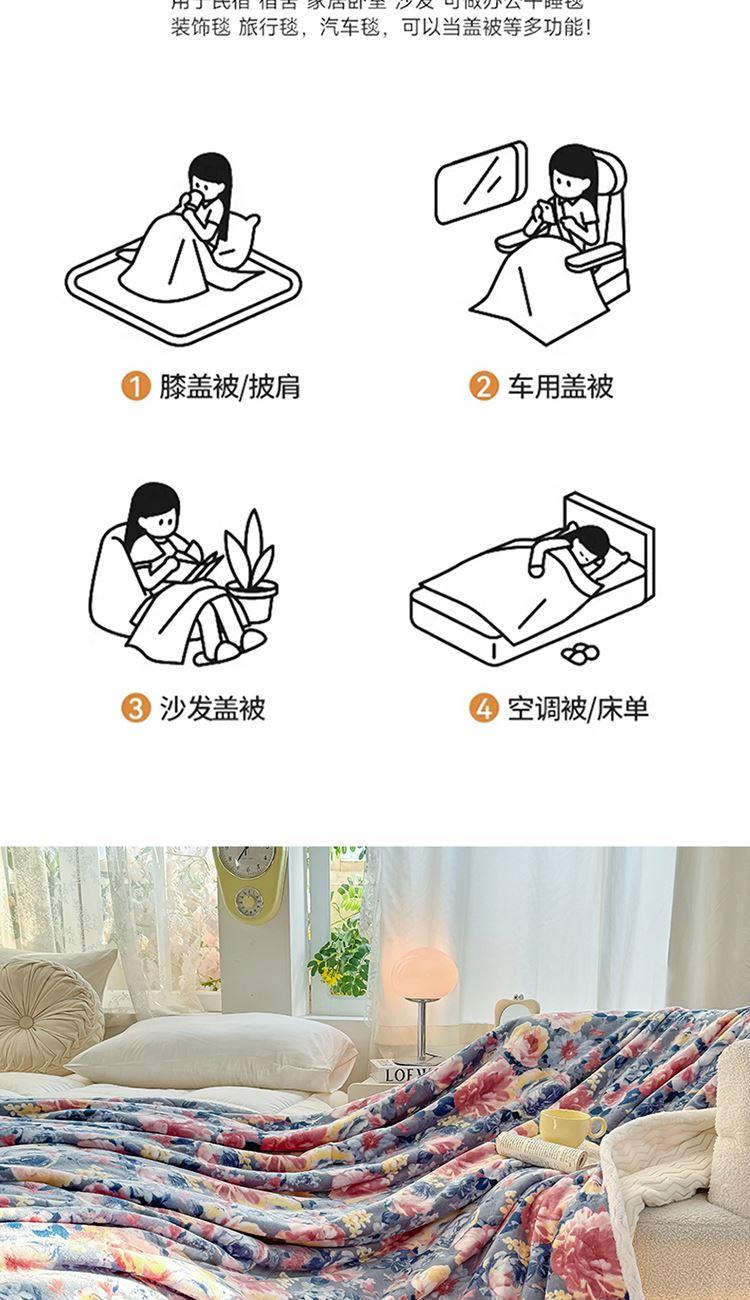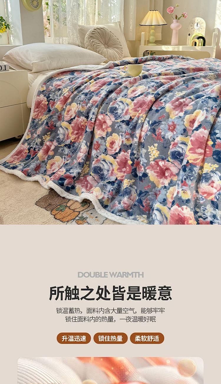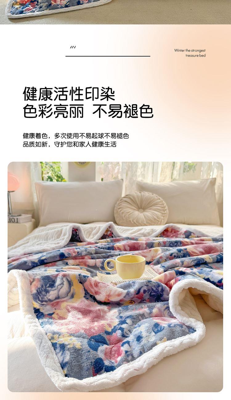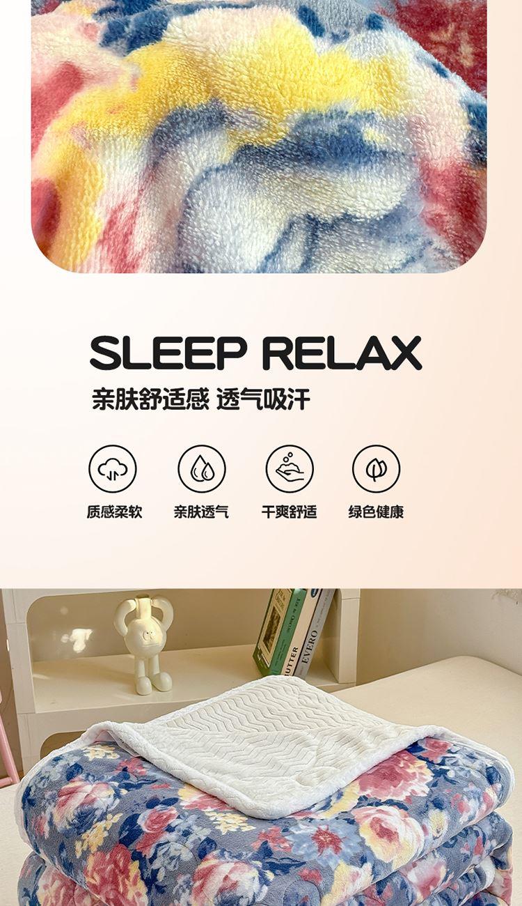 1:冬日暖阳与美梦相拥享受温暖的浪漫全新升级牛奶绒多功能夹棉盖毯被三层加厚锁温毯 专注打造温馨的家 尺寸150x200cm单毛毯 面料:牛奶绒+贝贝绒三层夹棉盖毯被 特点:盖垫两用速热保暖 包装:彩盒 重量:1.6kg