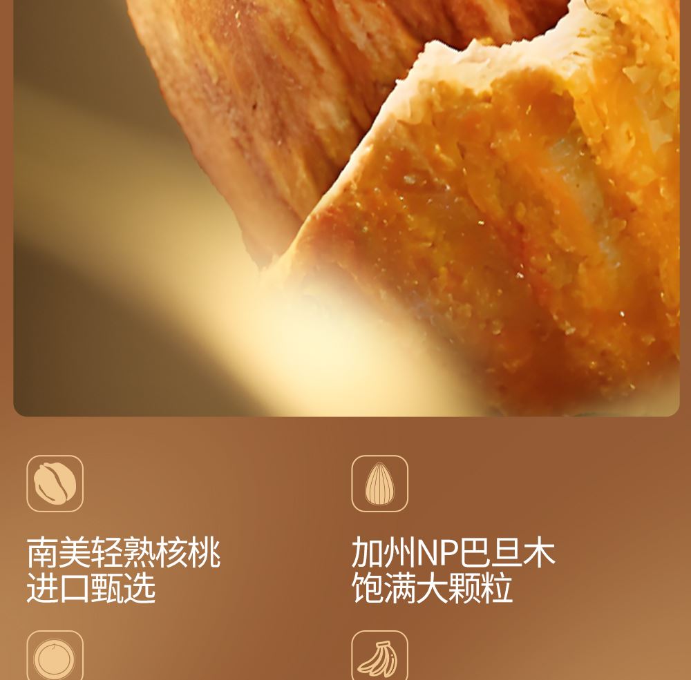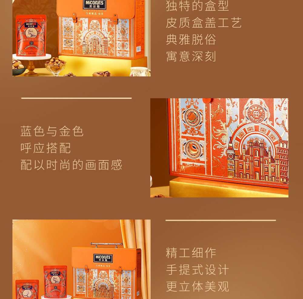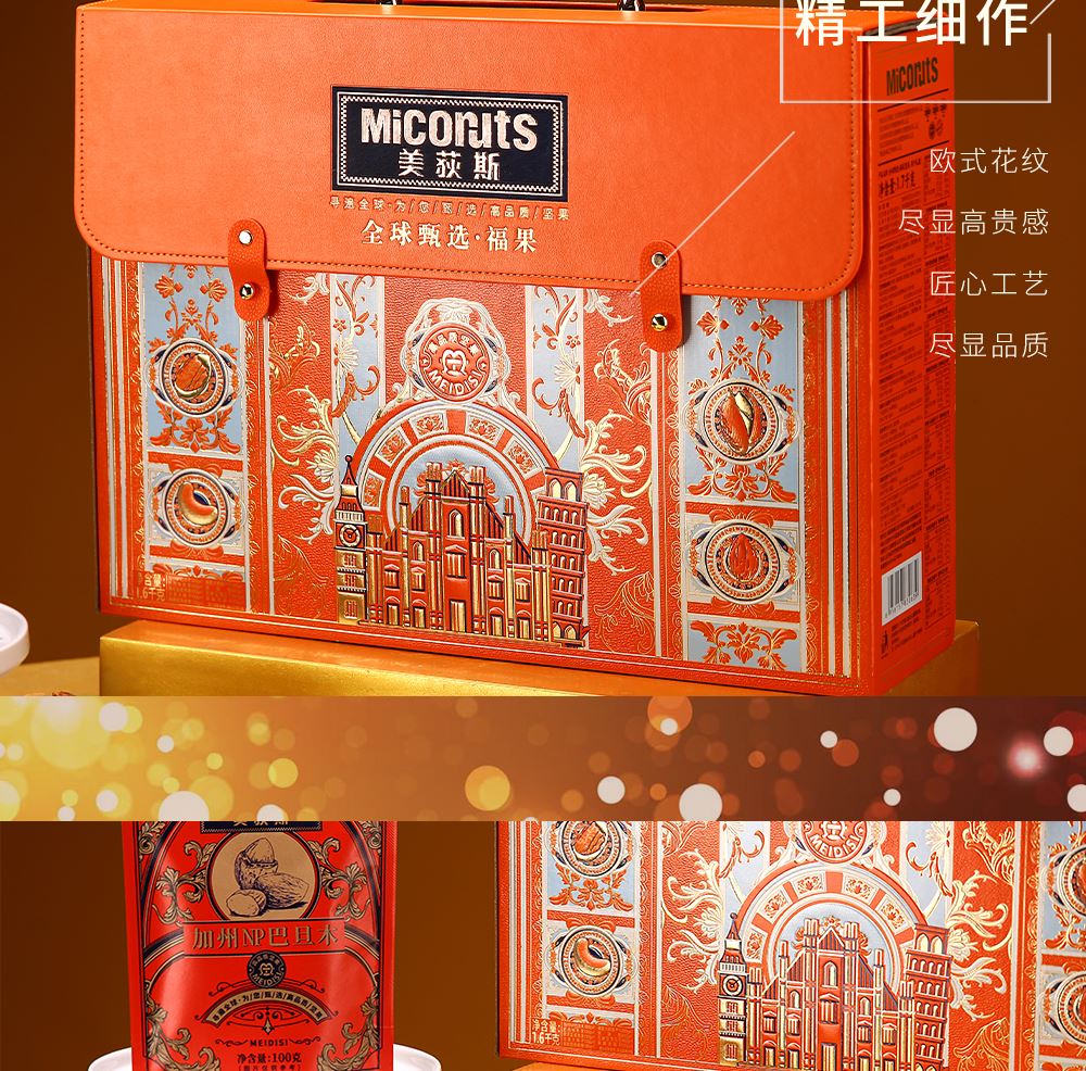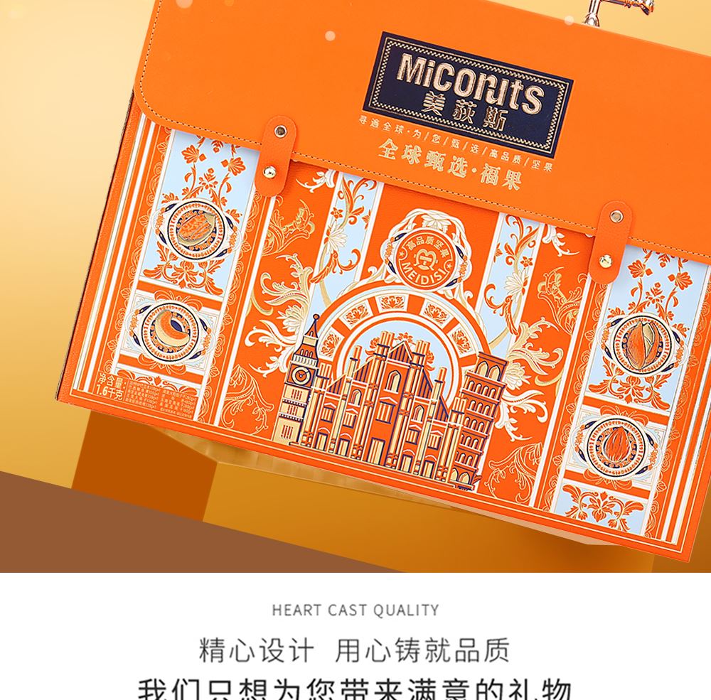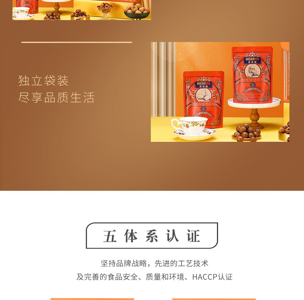 加州NP巴旦木 100g*1 巴西鲍鱼果 100g*1 南非珍宝碧根果 100g*1 南非夏威夷果 100g*1 南美轻熟核桃 100g*1 南美火焰提子干 180g*1 波斯枣 480g*1 东南亚黄蕉干 280g*1 泰国龙眼干 160g*1 合计:1600g