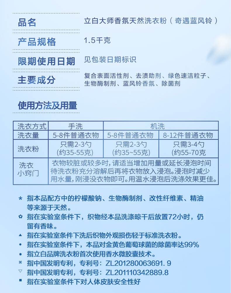 大师香氛天然洗衣粉(奇遇蓝风铃)1.5kg