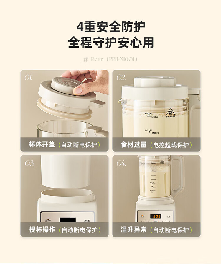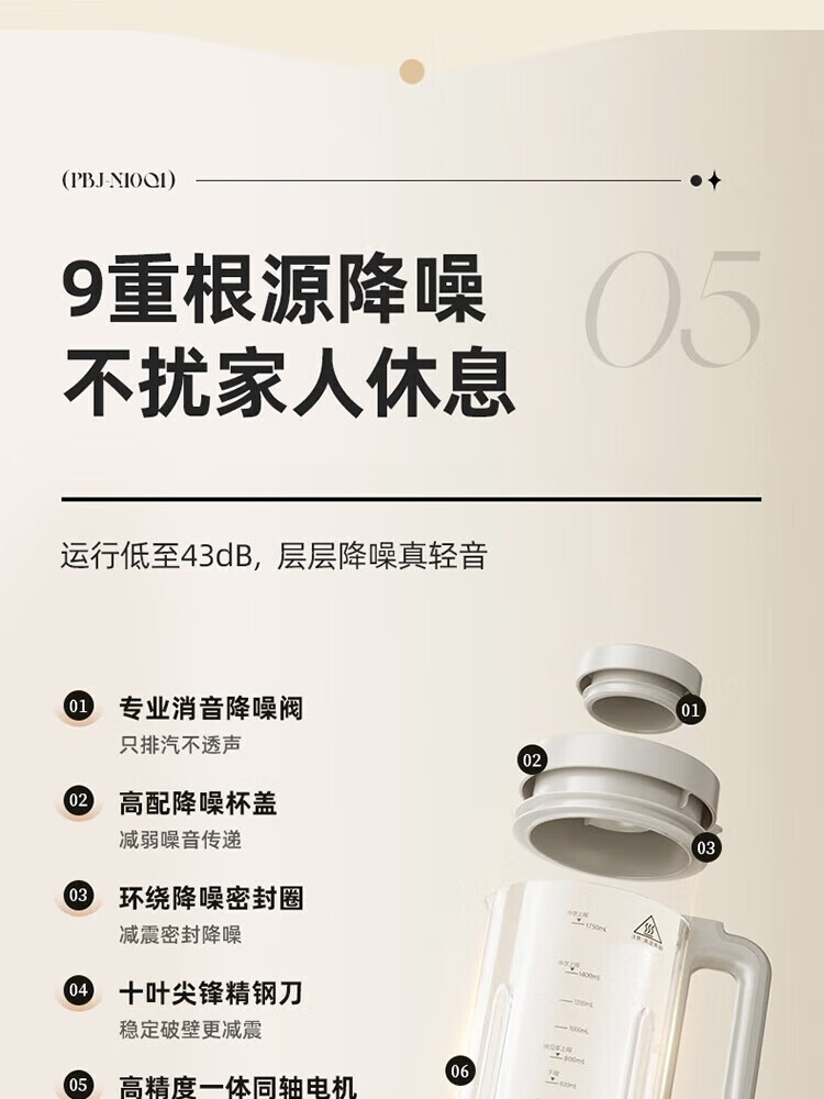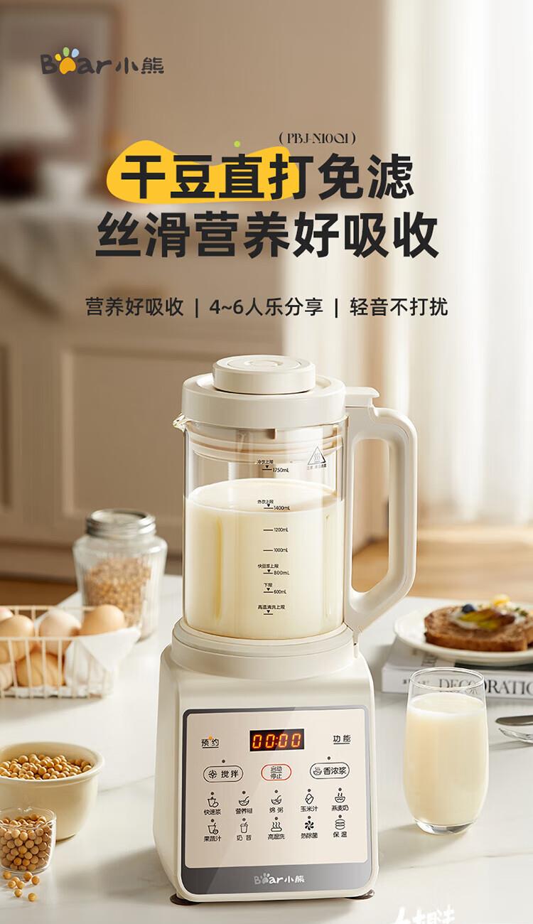 1、干豆直打免滤,丝滑营养好吸收 2、漩动萃取系统,激发豆浆醇香 3、多段营养精熬,丝滑香浓如牛奶 4、1.75升欢享量,满载全家幸福畅饮 5、智慧交互触按,高清大字一眼看懂