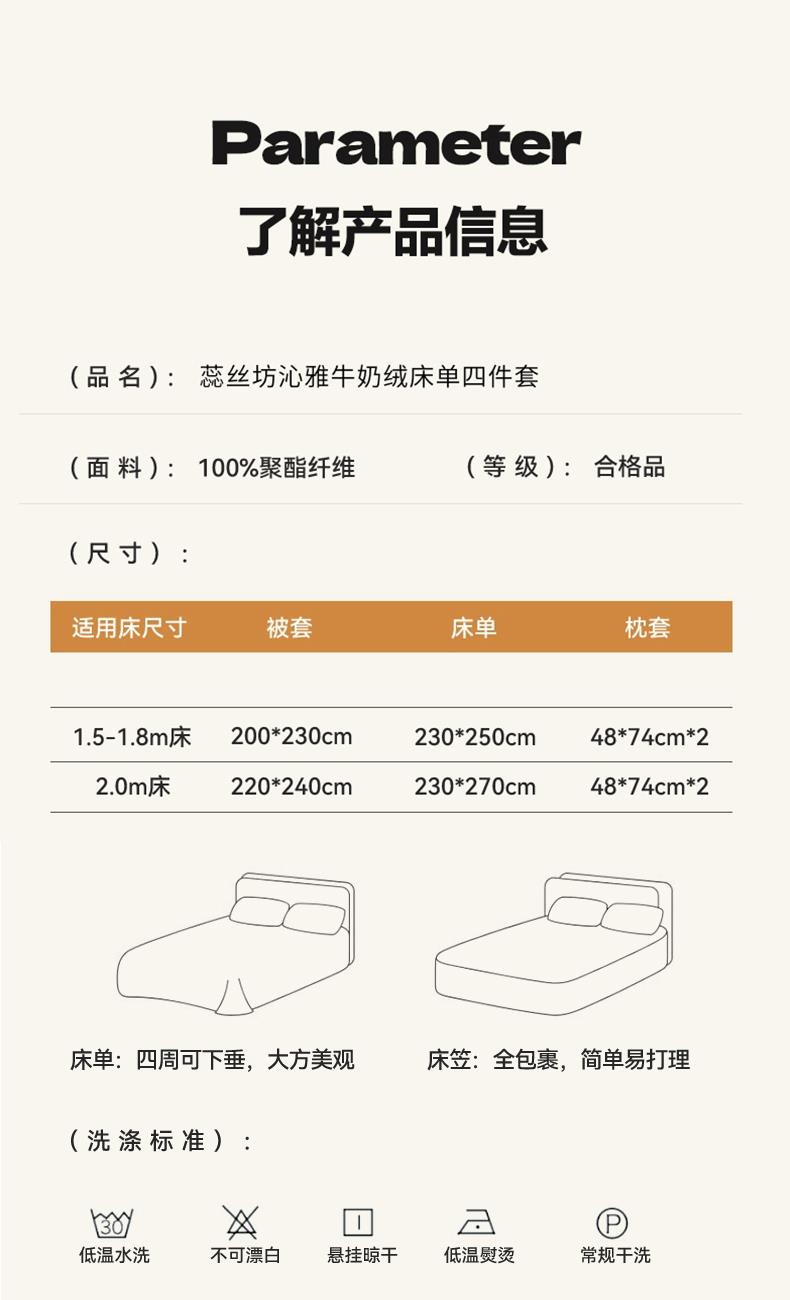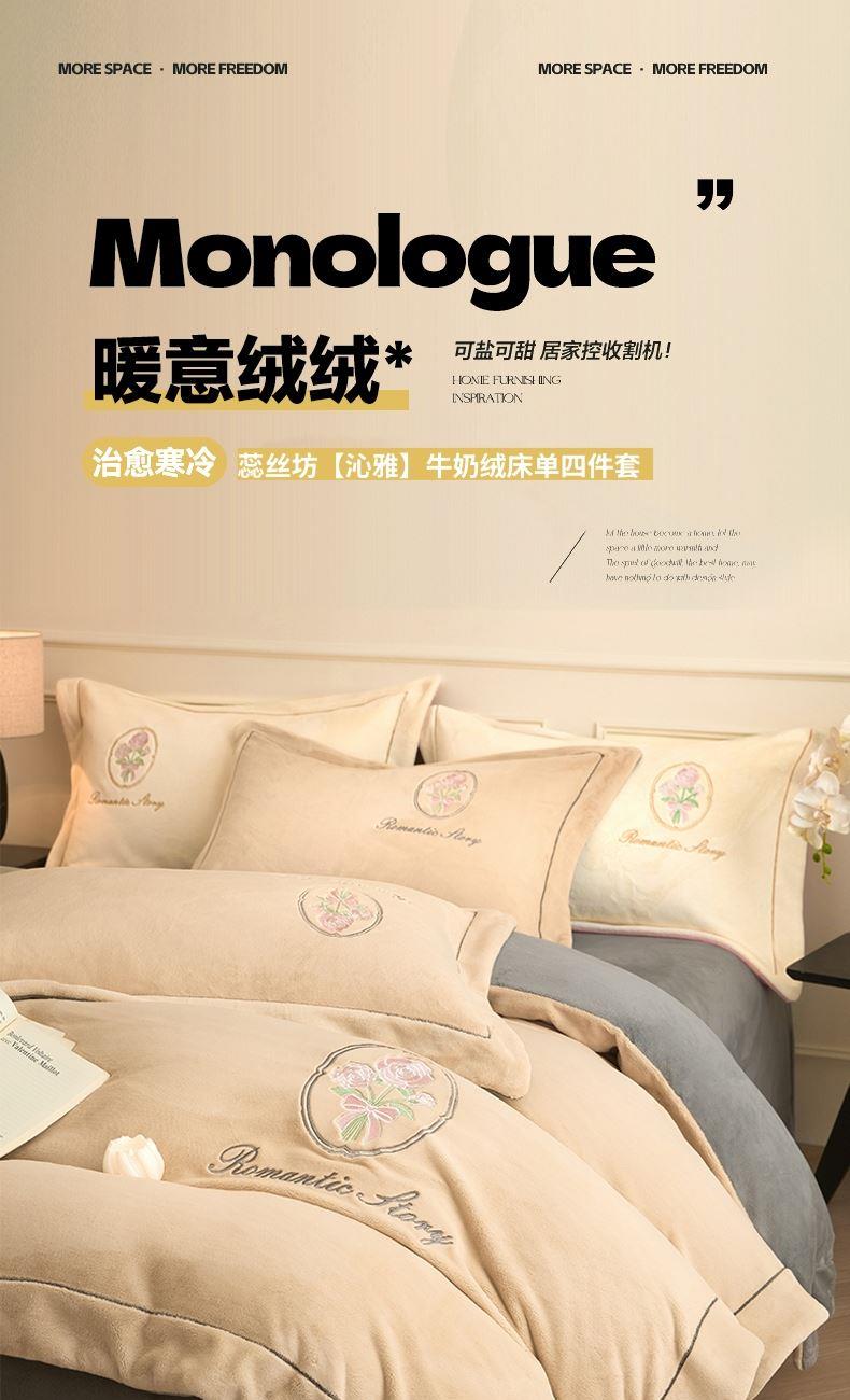 蕊丝坊家纺沁雅牛奶绒床单四件套