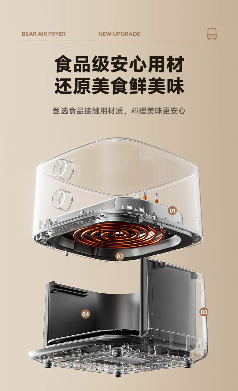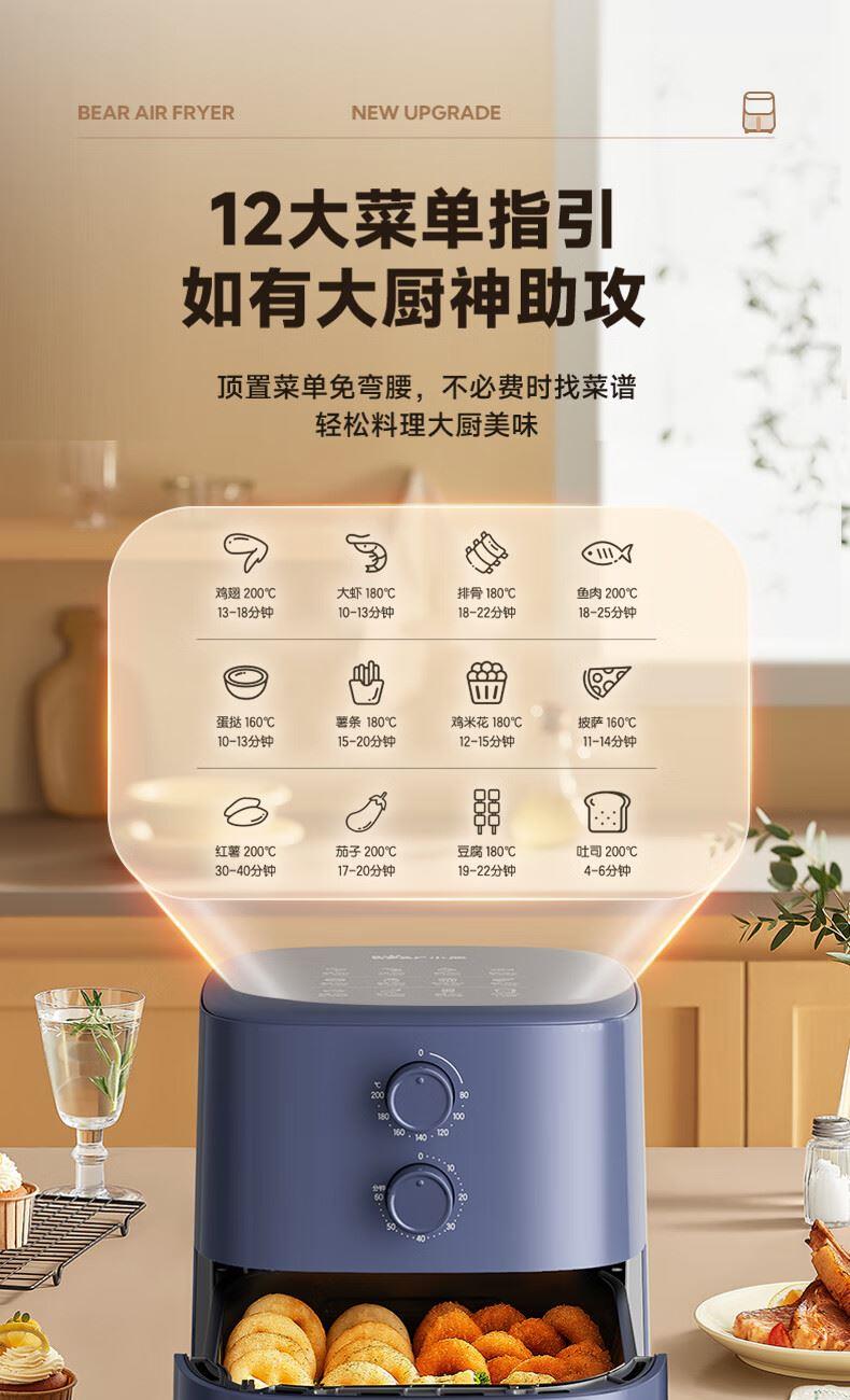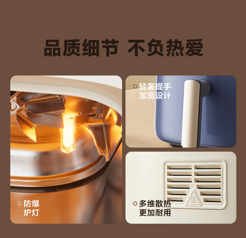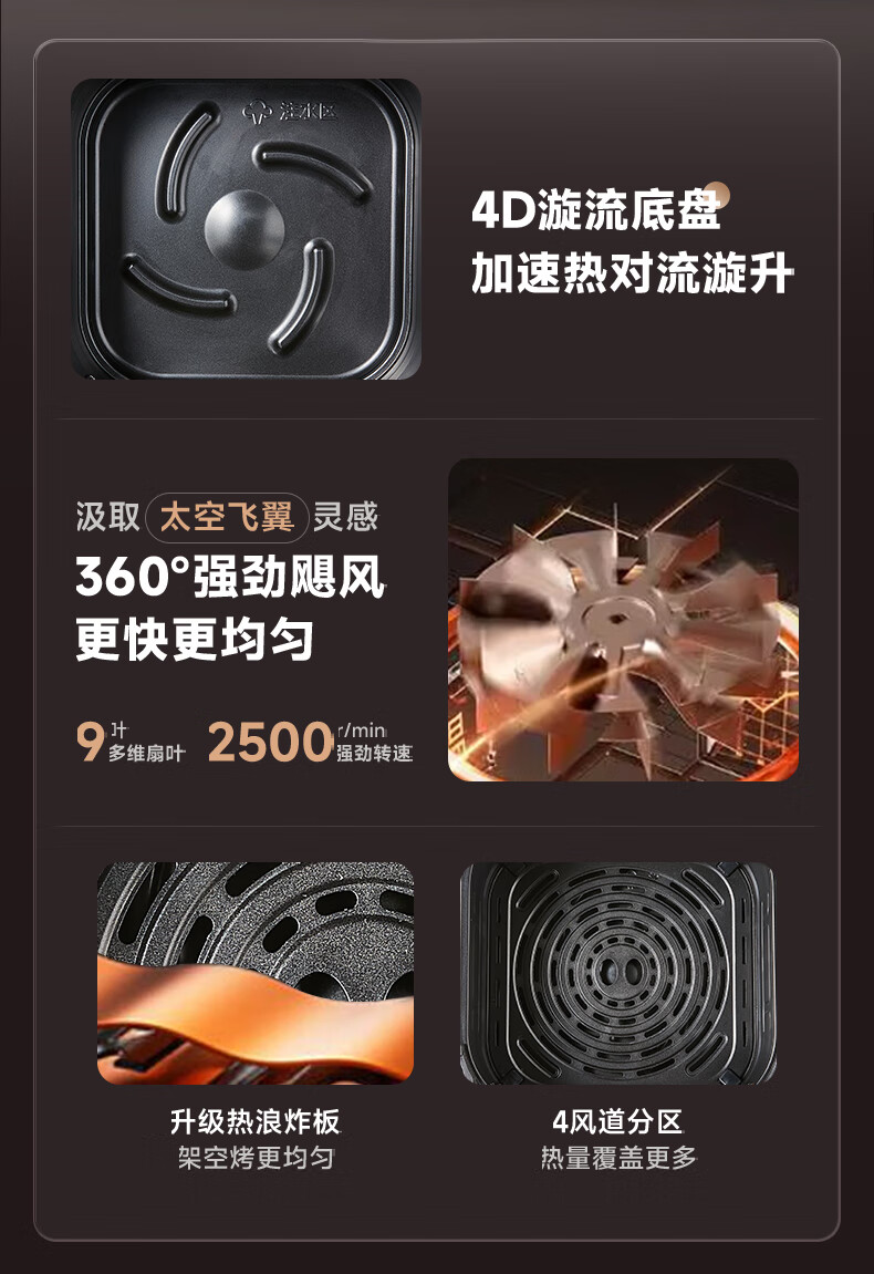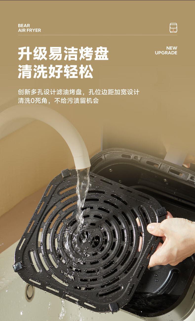 容量 5L 额定功率 1500W加热 产品重量 4KG 包装尺寸 391*316*347 1、免翻面结构设计 2、微蒸汽嫩烤,通过微蒸汽嫩烤补充食物水分 3、低噪音结构设计,噪音低至46db 4、5L家庭大容量 5、双旋钮操作简易方便,适合老人小孩