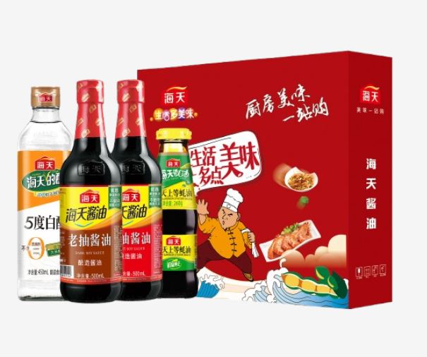 净含量:1450ml+260g 内配: 海天生抽酱油500ml*1 海天老抽酱油500ml*1 海天白醋450ml*1 海天上等蚝油260g*1