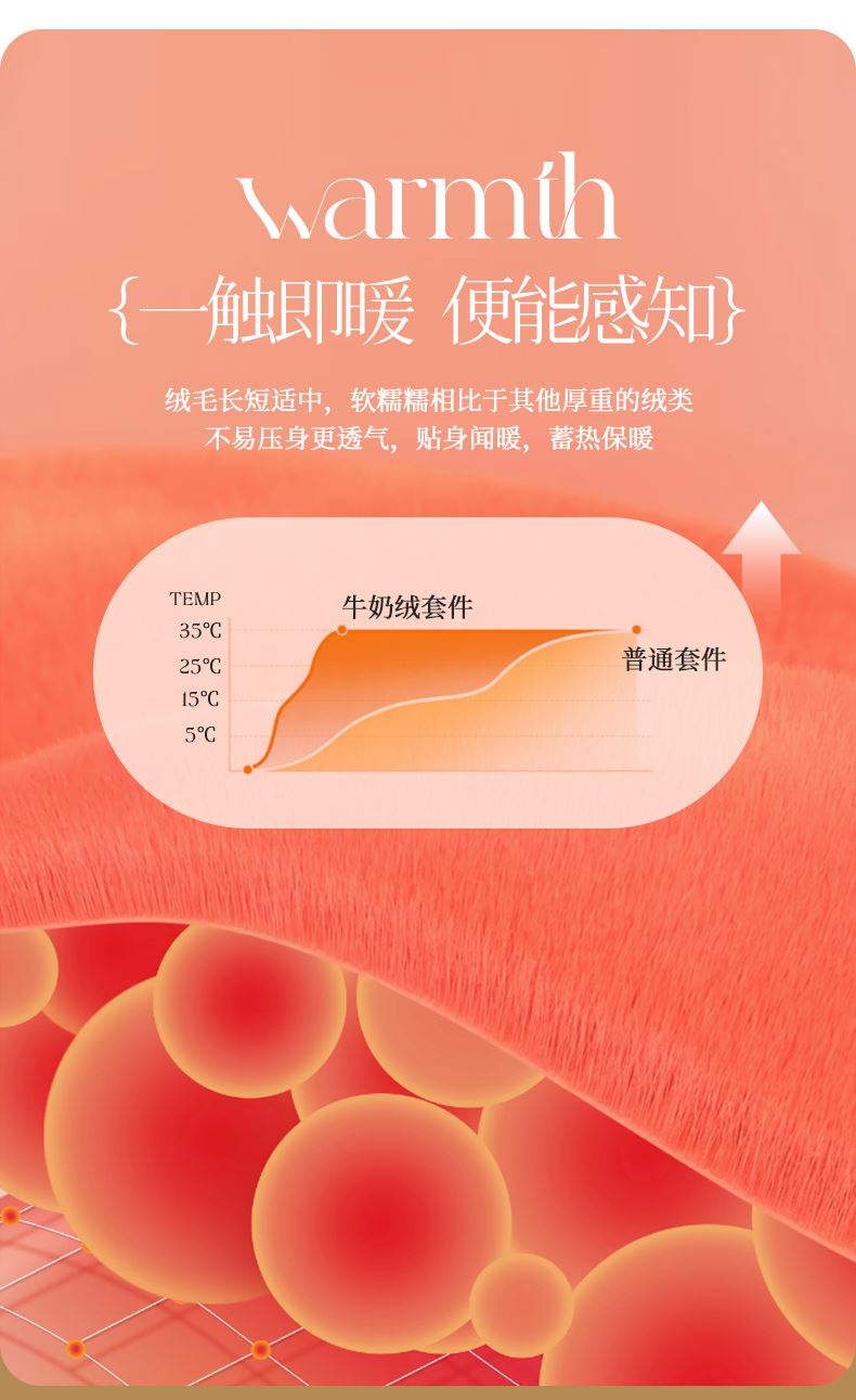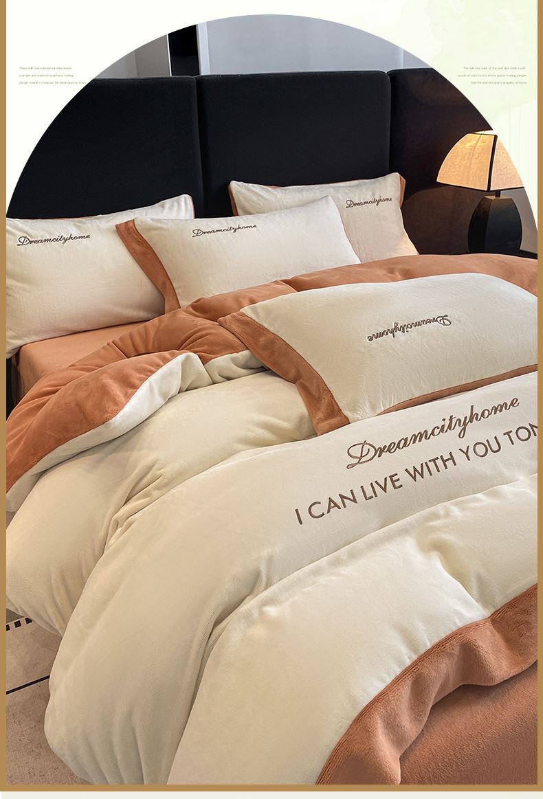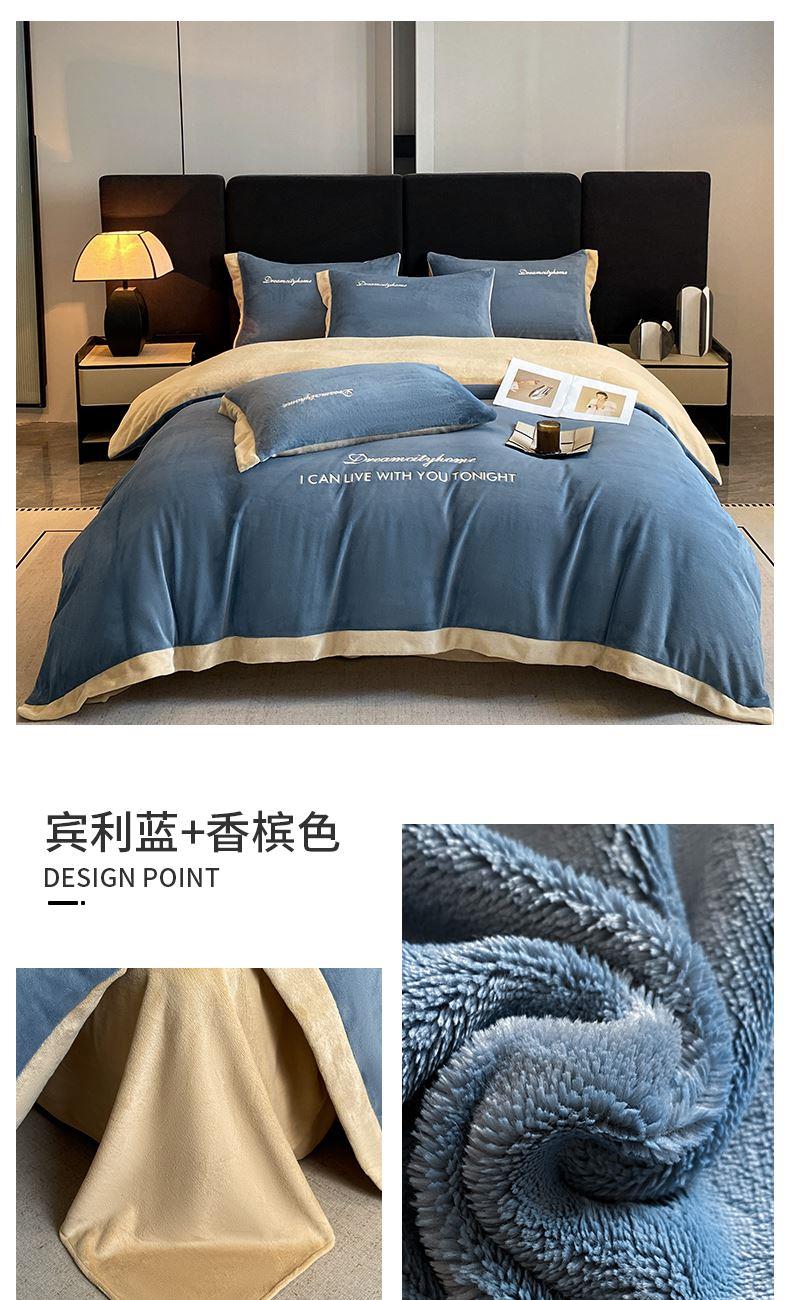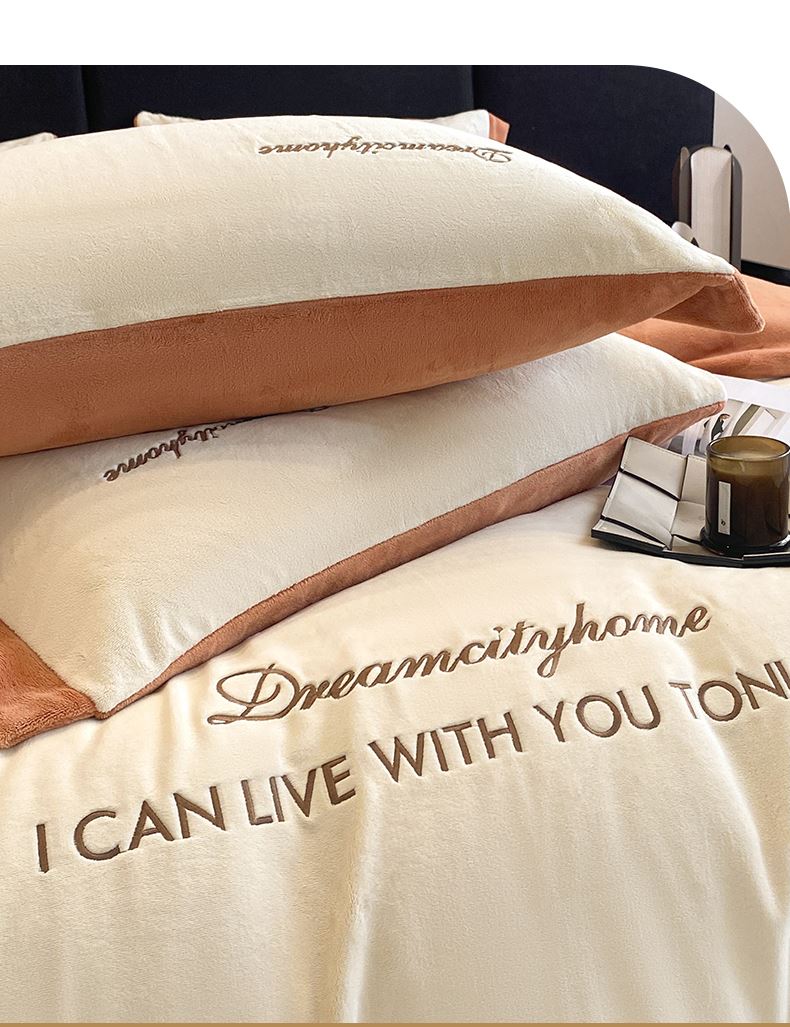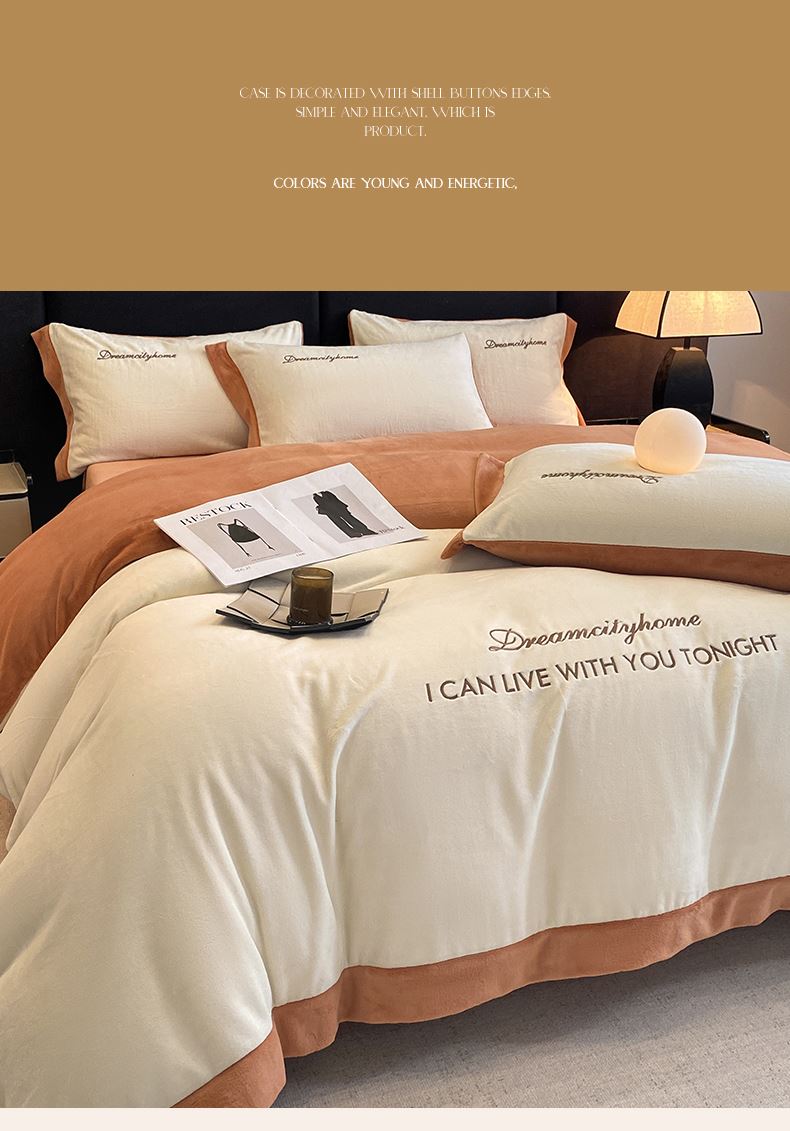 精选高克重牛奶绒面料,绒毛浓密厚实,上手便是满溢的柔软。不同于普通绒类的单薄,高克重带来的是实打实的温暖包裹感 —— 刚钻进被窝,暖意就顺着肌肤蔓延开来,无需再忍受 “冷被窝” 的煎熬。时尚双拼配色,将两种温柔色调巧妙融合,既有撞色的灵动感,又不失简约大气。无论是莫兰迪色系的低饱和碰撞,还是经典深浅色的搭配,都能轻松适配现代、北欧、ins 等多种家居风格。