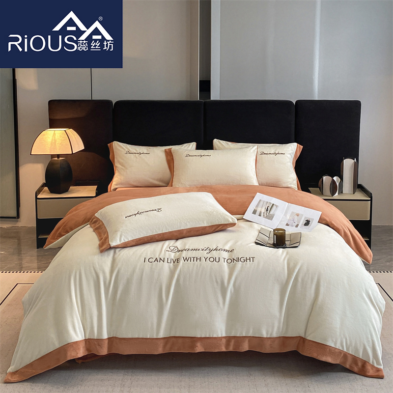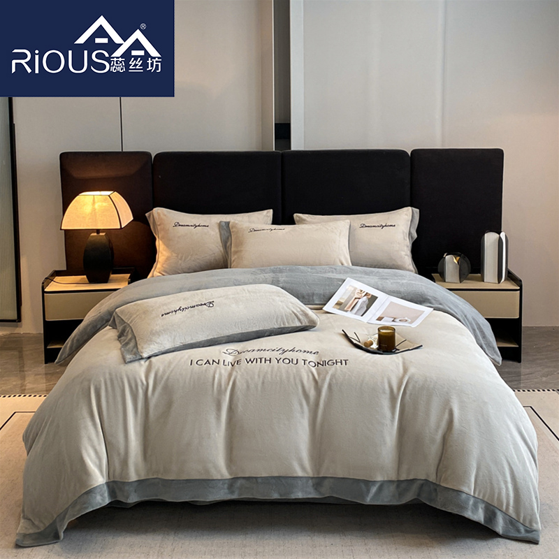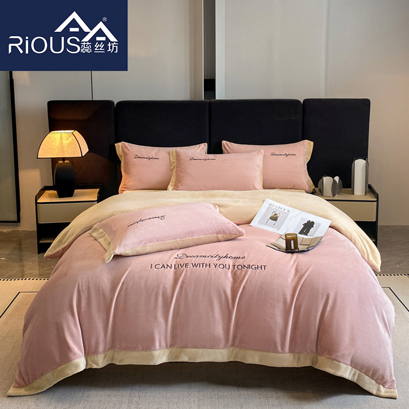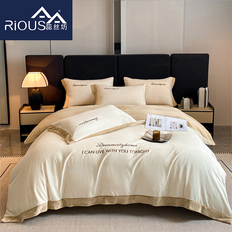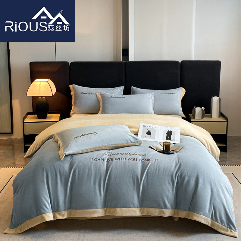 蕊丝坊家纺安克斯牛奶绒刺绣四件套