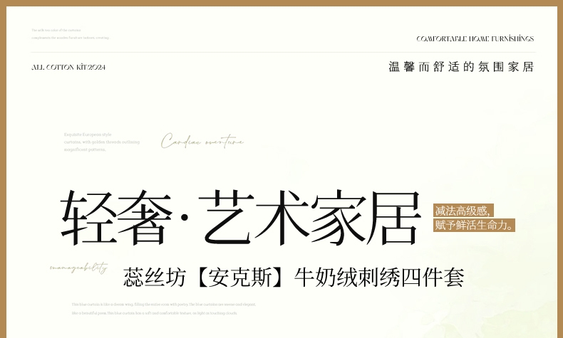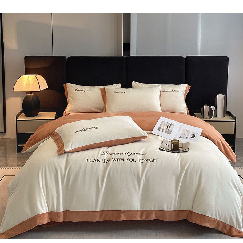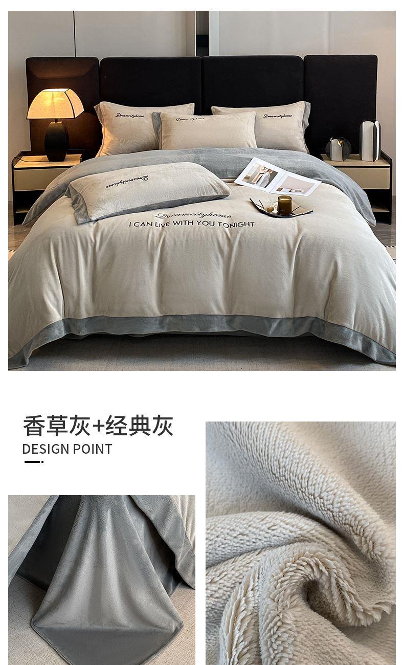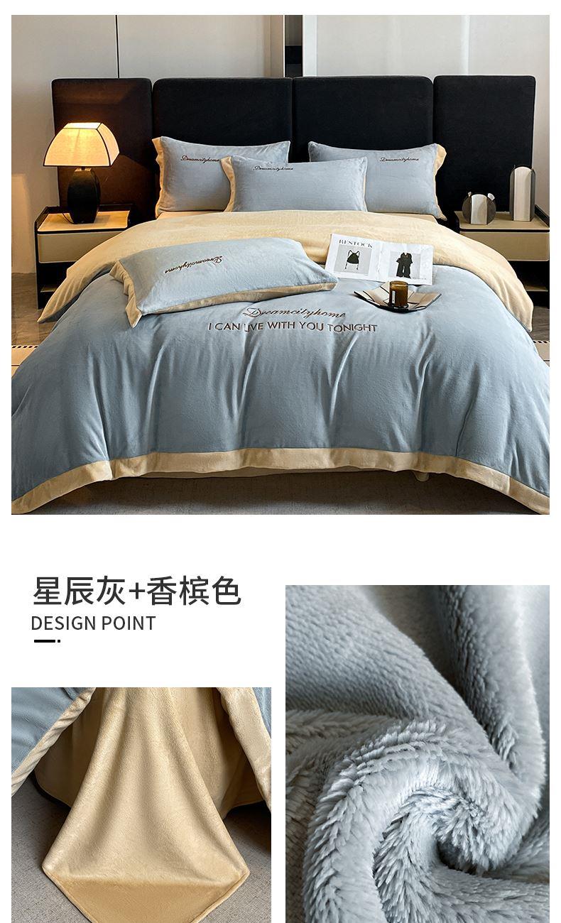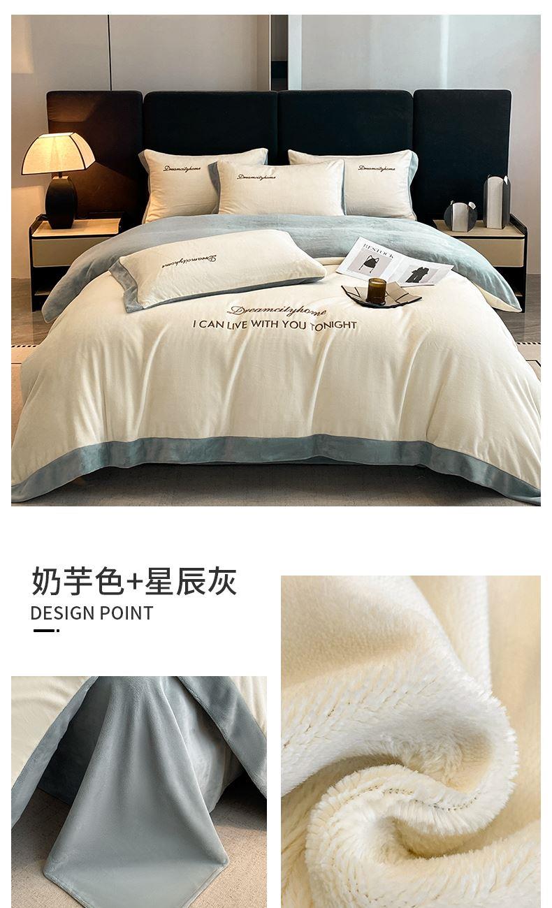 蕊丝坊家纺安克斯牛奶绒刺绣四件套