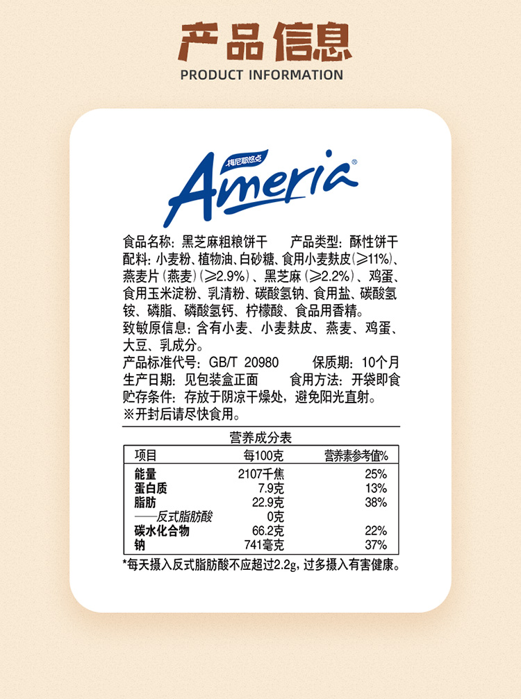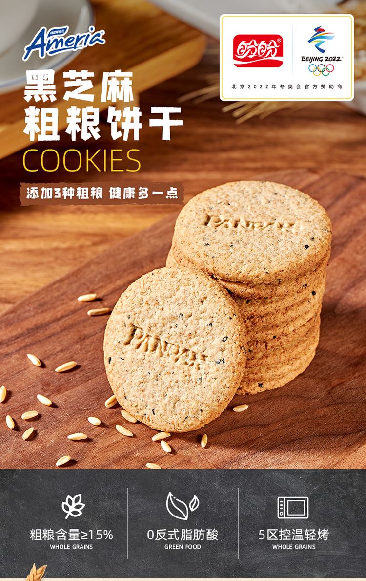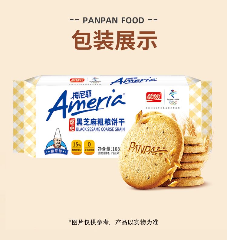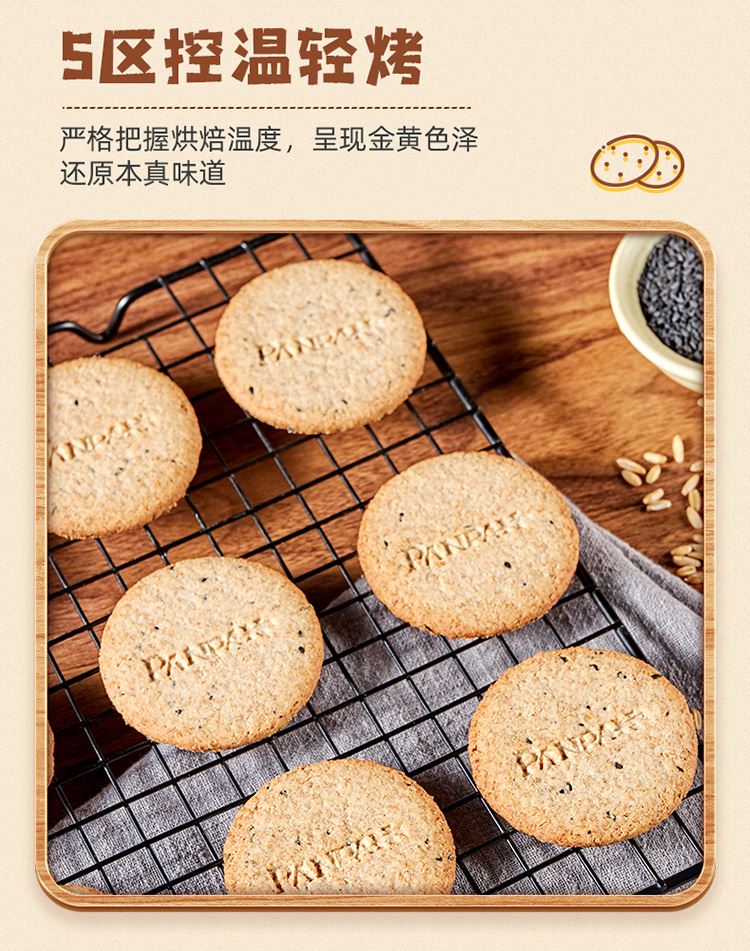 盼盼黑芝麻粗粮饼干,是一款融合了经典粗粮与现代烘焙工艺的健康零食。 它严选黑芝麻与多种谷物,带来浓郁的谷物本香与芝麻醇香,口感酥脆可口。 产品富含膳食纤维,既可作快速充饥的早餐或下午茶,也能满足日常的营养补充需求。 独立小包装设计,方便携带与分享。这是一款兼顾美味、营养与便捷的日常饼干之选。