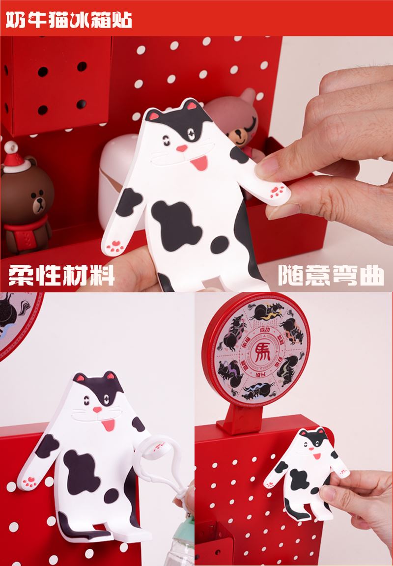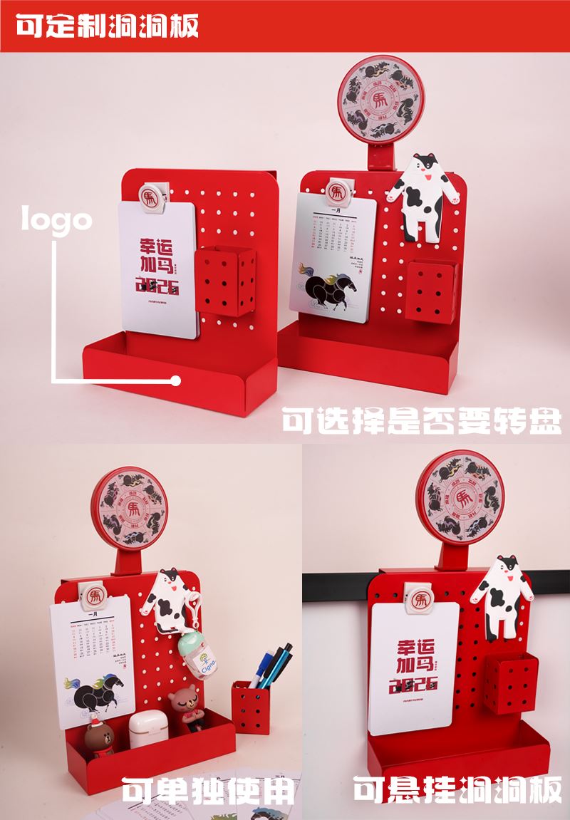 鸿运当头洞洞板*1 23cm*20cm 挂件笔筒*1 6.5cm*5cm 磁铁夹子*1 3.5cm*3cm 记事月历*1 10cm*15cm 13张 五福转盘*1 直径10cm 贪吃猫冰箱贴*1 7cm*5cm 包装盒尺寸:27.5*23.3*10.5cm