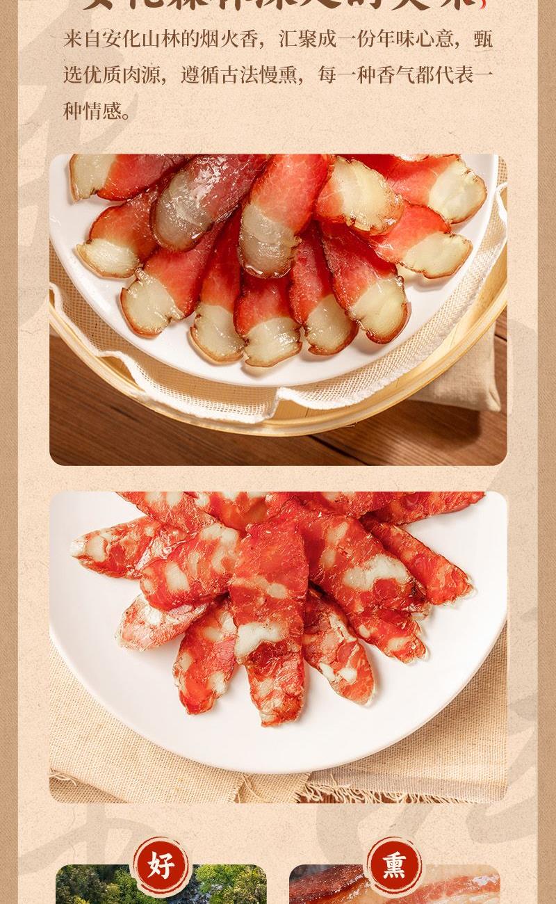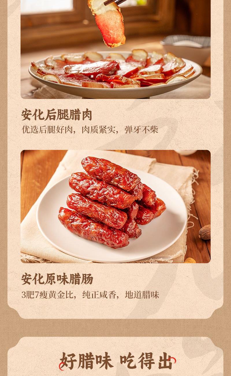 1.安化后腿腊肉(300g) 2.安化原味腊肠(250g)
