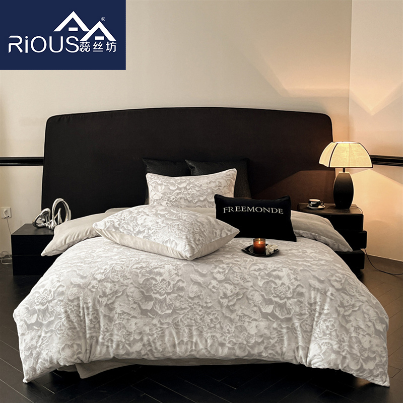 蕊丝坊家纺丽娜雕花牛奶绒床单四件套