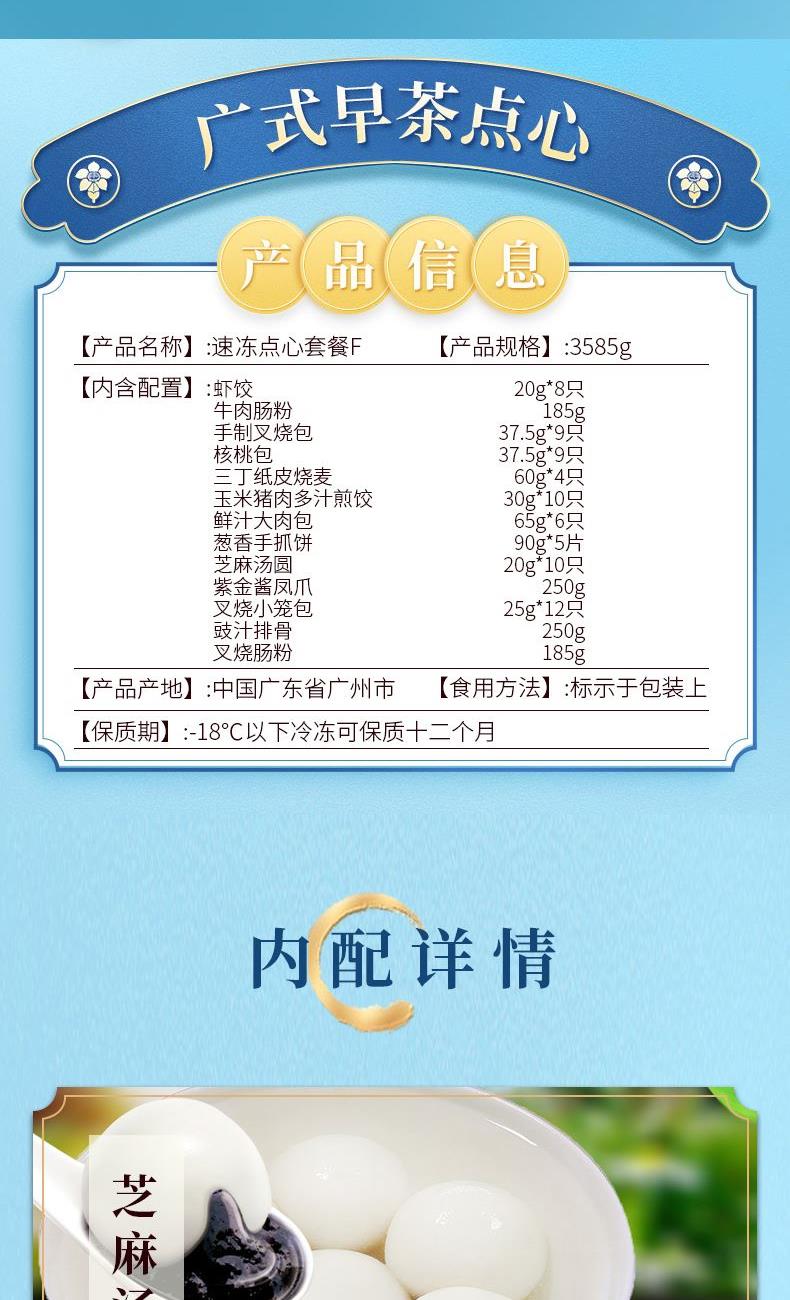 中华粤菜标杆 无需茶楼排队,在家轻松复刻地道广式饮茶体验 省心、放心和正宗的味道 礼盒尺寸:42.5*29.5*26.5cm 内容物:虾饺(160g) 牛肉肠粉(185g) 手制叉烧包(337.5g) 核桃包(337.5g) 三丁纸皮烧麦(240g) 玉米猪肉多汁煎饺(300g) 鲜汁大肉包(390g) 葱香手抓饼(450g) 芝麻汤圆(200g) 紫金酱凤爪(250g) 叉烧小笼包(300g) 豉汁排骨(250g) 叉烧肠粉(185g)