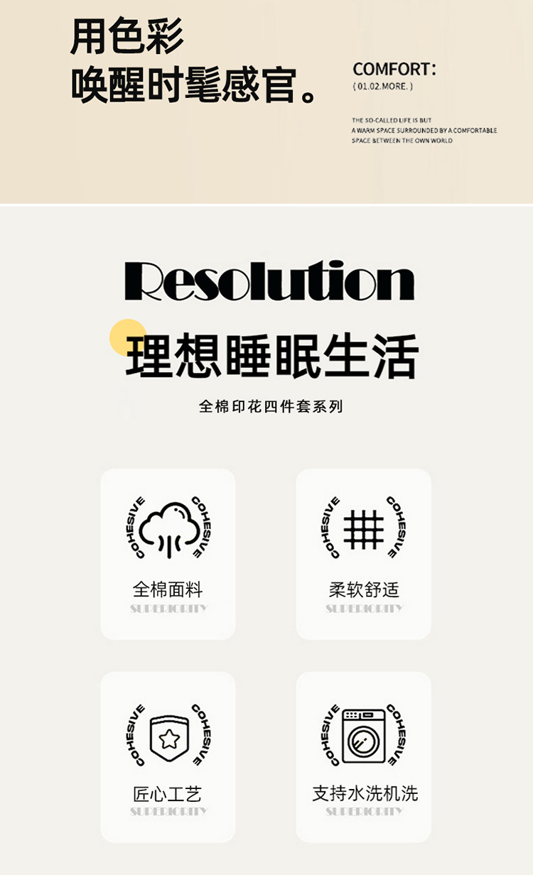 1:从内而外皆是棉与身体接触的每一寸都是天然阳光棉, 2:软糯亲肤舒适细腻质感, 触感细腻 柔软舒适 透气排湿 3:AB双版精心搭配的版型设计 给床品增添层次 愈睡愈爱 尺寸:1.8m床被套200*230cm*1床单:230*245cm *1 枕套:48*74cm*2 包装:彩盒