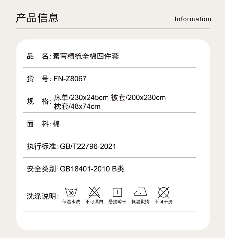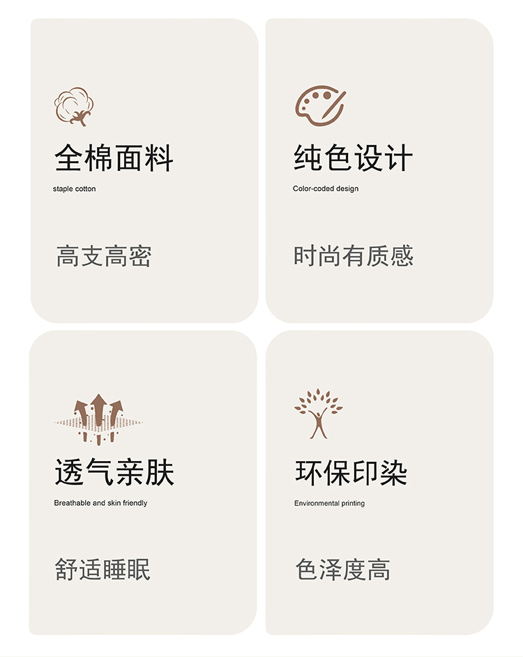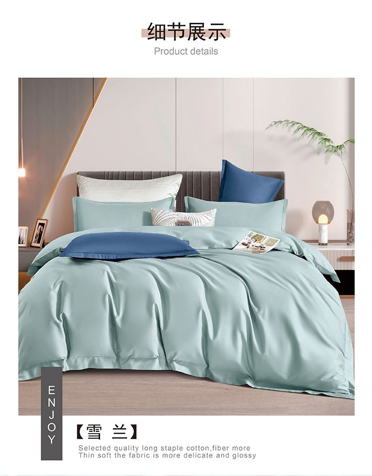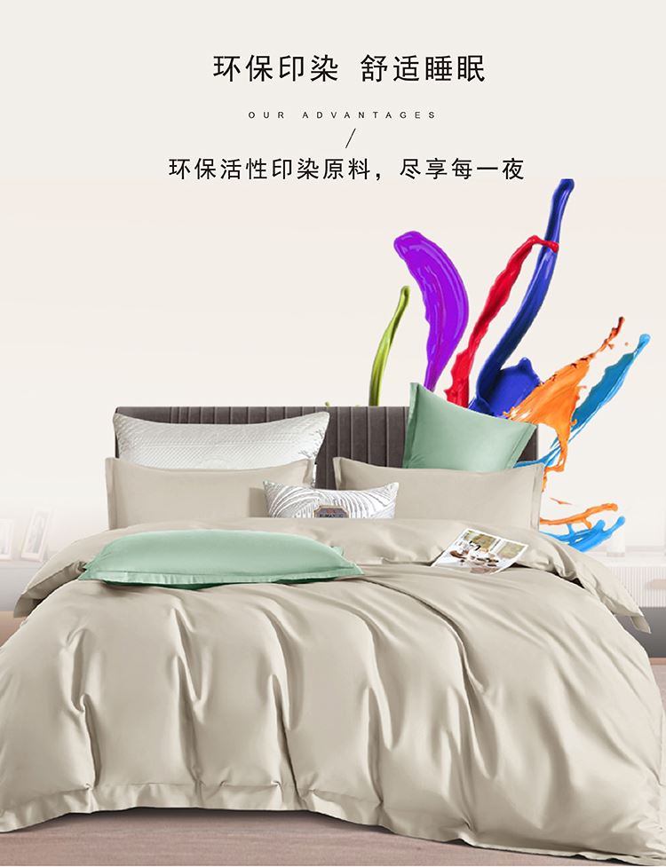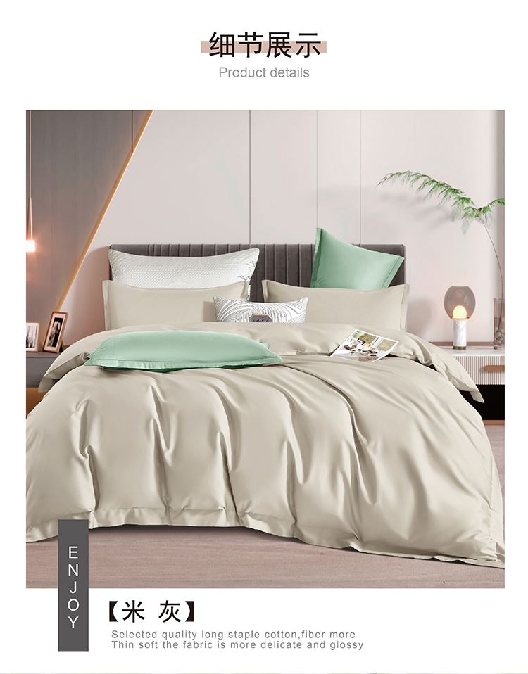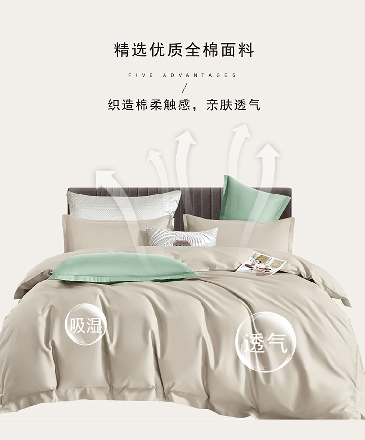 床单:230x245cm 被套:200x230cm 枕套:48x74cm 【面 料】全棉 (133*72) 产品特点: 1.全棉面料,手感柔软舒适,丝滑细腻有光泽; 2.纯色套件,适用多种家居风格,简约百搭; 3.活性印染,环保,四季适用。