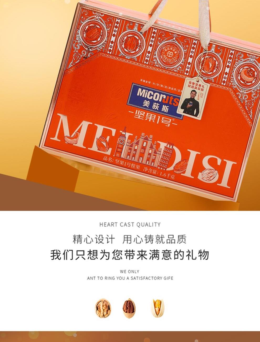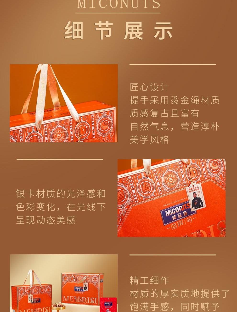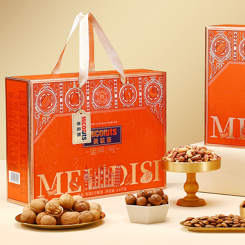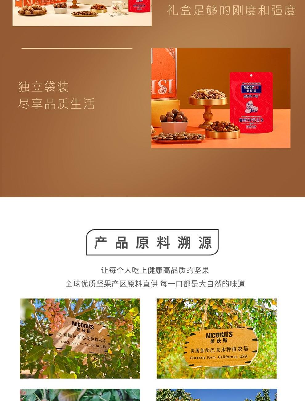 加州NP巴旦木 80g*1 东南亚紫衣腰果 80g*1 南非夏威夷果 80g*1 手剥轻熟核桃 100g*1 笑口杏核 100g*1 东南亚黄蕉干 280g*1 一级灰枣 500g*1 映山红果 380g*1 合计:1600g