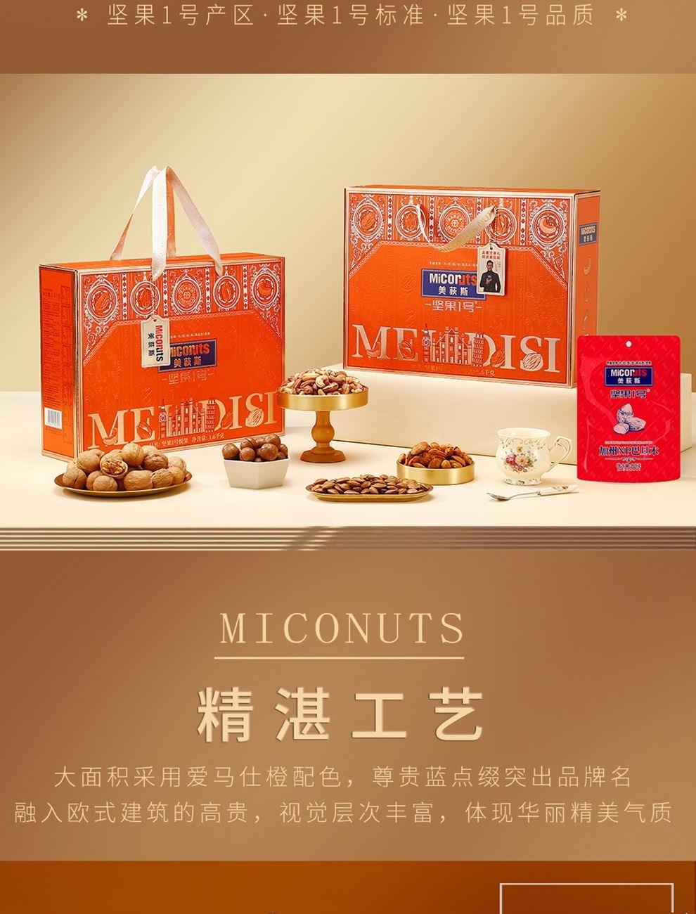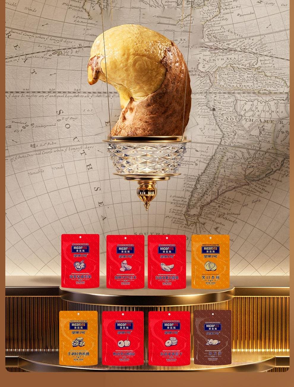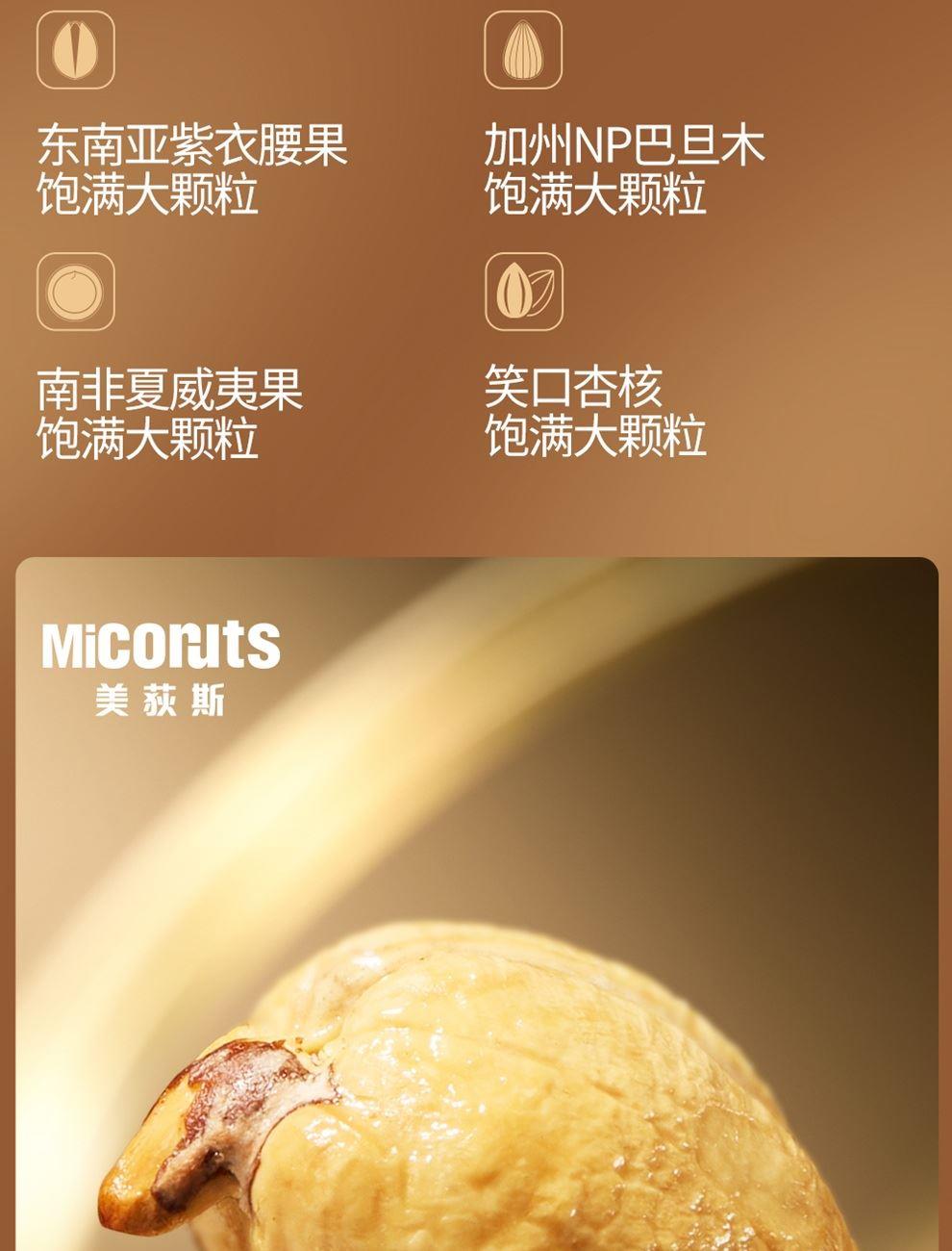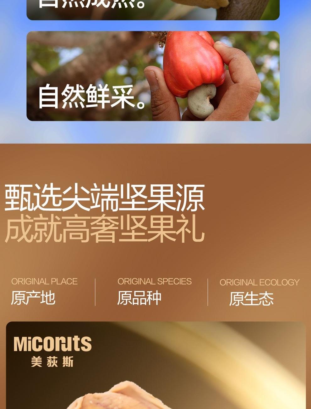 加州NP巴旦木 80g*1 东南亚紫衣腰果 80g*1 南非夏威夷果 80g*1 手剥轻熟核桃 100g*1 笑口杏核 100g*1 东南亚黄蕉干 280g*1 一级灰枣 500g*1 映山红果 380g*1 合计:1600g