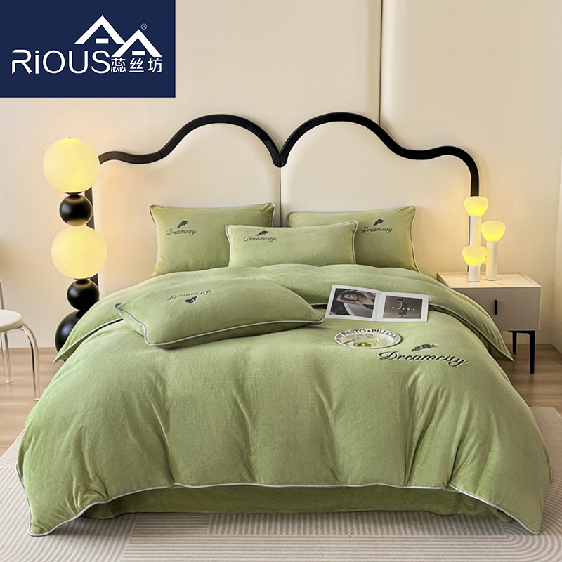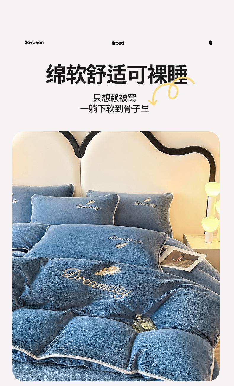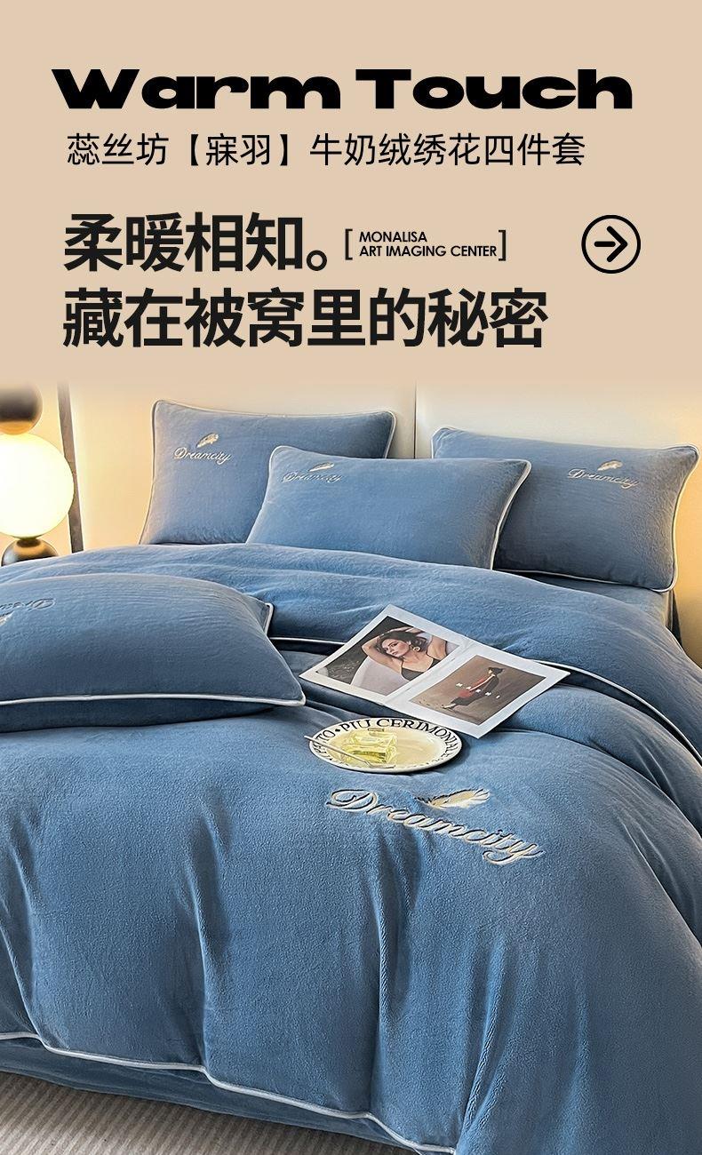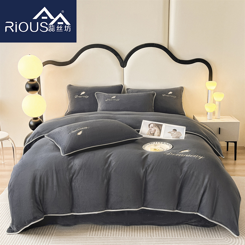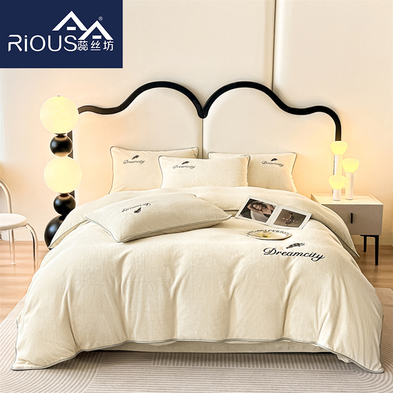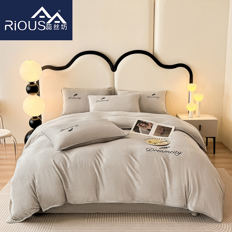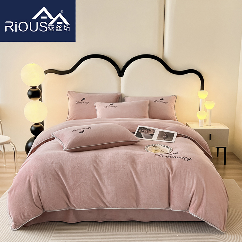 蕊丝坊家纺寐羽牛奶绒绣花四件套