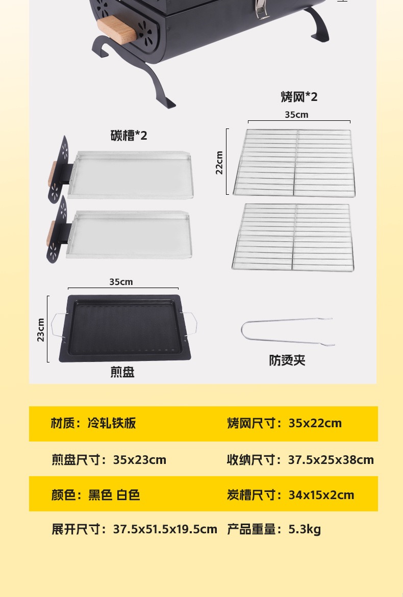 37.5*51.5*19.5展开 34*15*2cm 炭槽 32*23*cm烤盘
