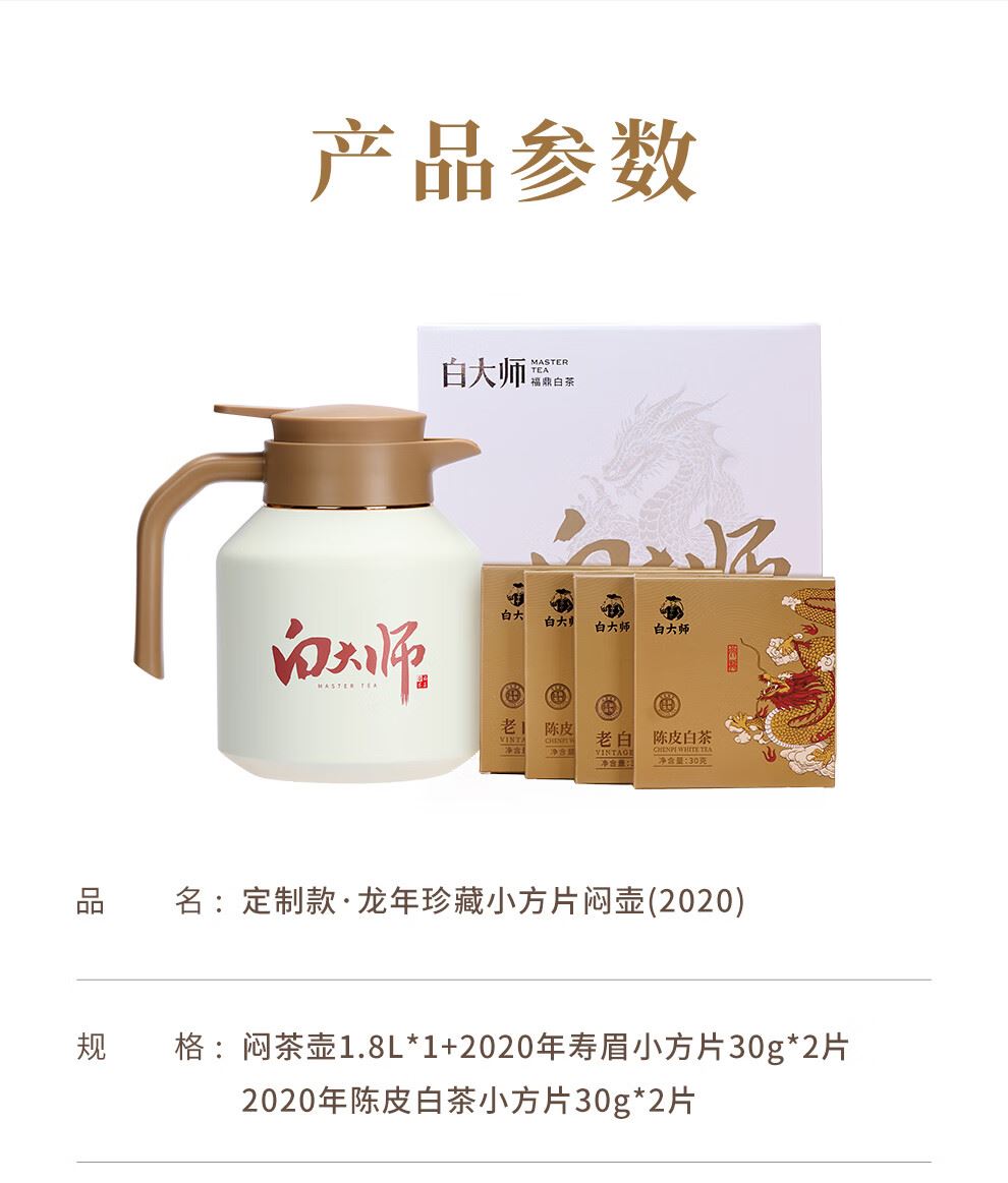 白大师龙年珍藏小方片2020年寿眉陈皮白茶闷泡壶礼盒