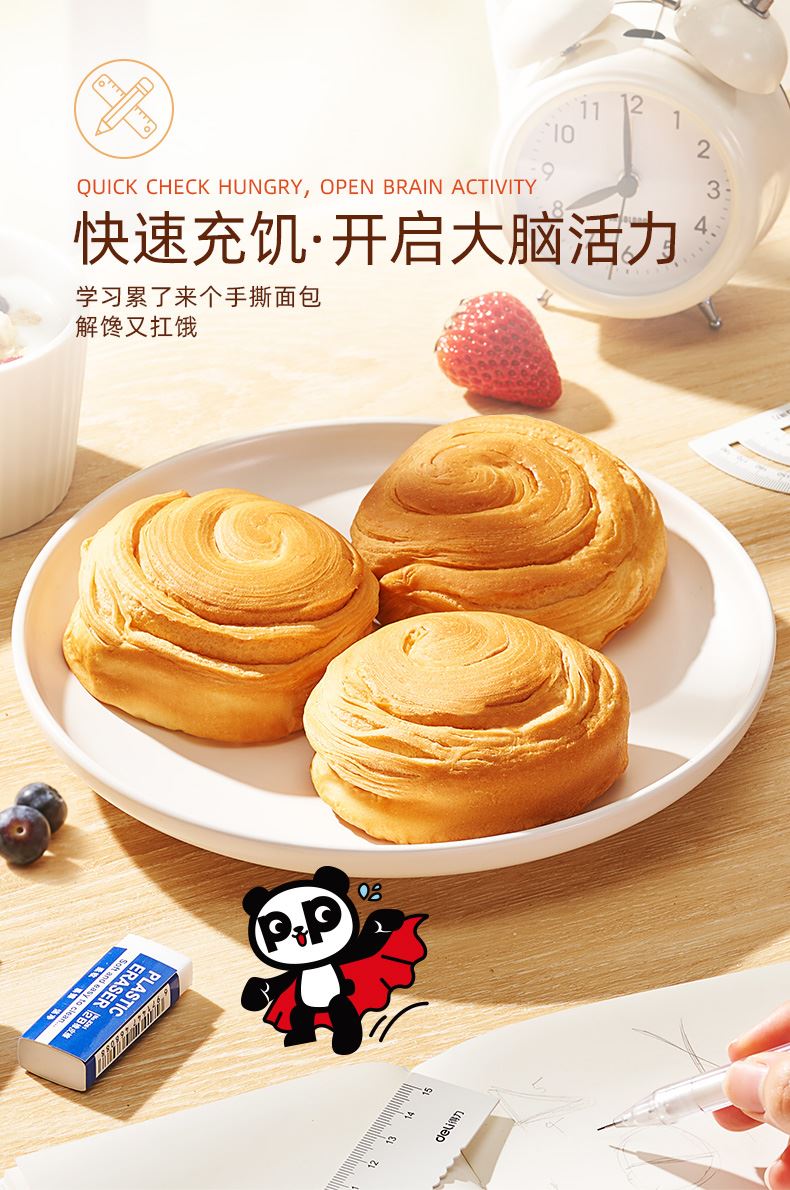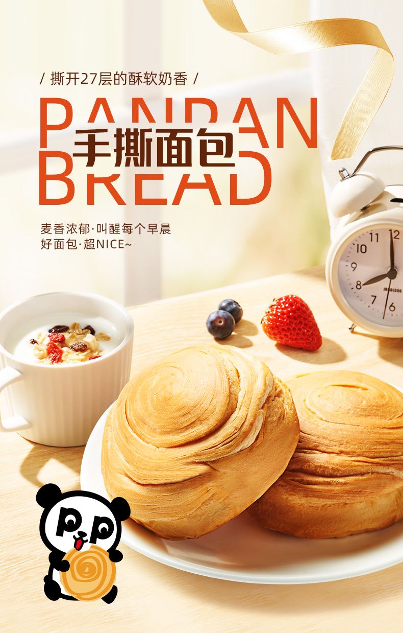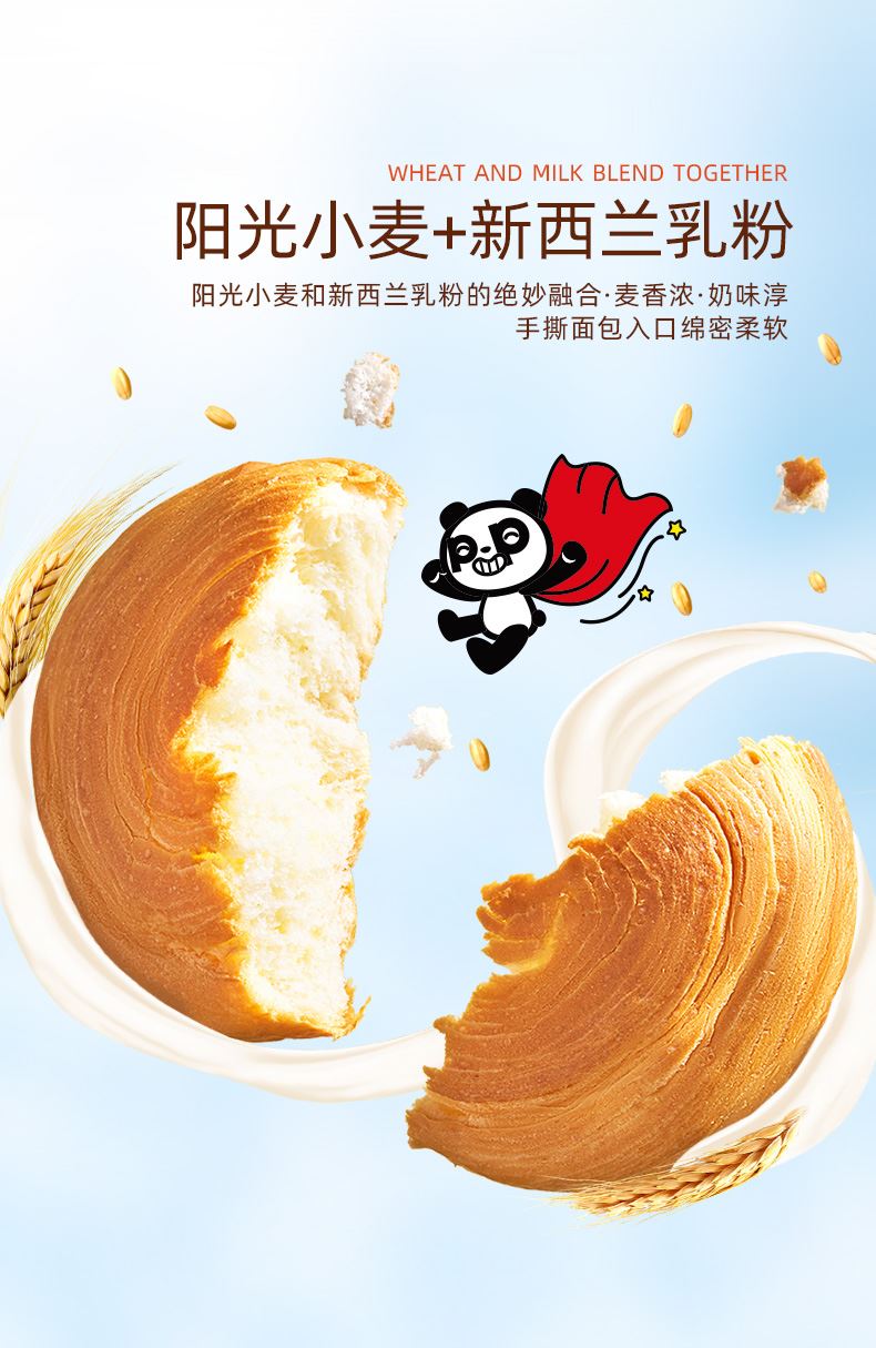 盼盼手撕面包是盼盼食品集团旗下经典烘焙产品。 它采用优质原料,奶香浓郁,口感细腻松软,提供日常所需能量与营养。 独立包装,方便携带,是早餐、课间、办公或旅途中理想的便捷健康零食。 盼盼食品始终秉持“绿色、健康、营养、放心”的理念,致力于为每个家庭提供美味安心的食品选择。
