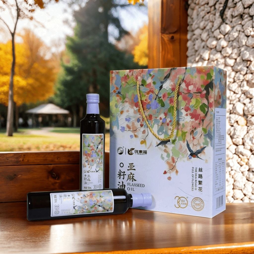 丝路繁花冷榨亚麻籽油礼盒500mlX2