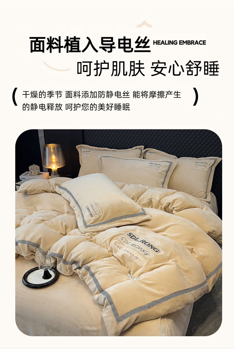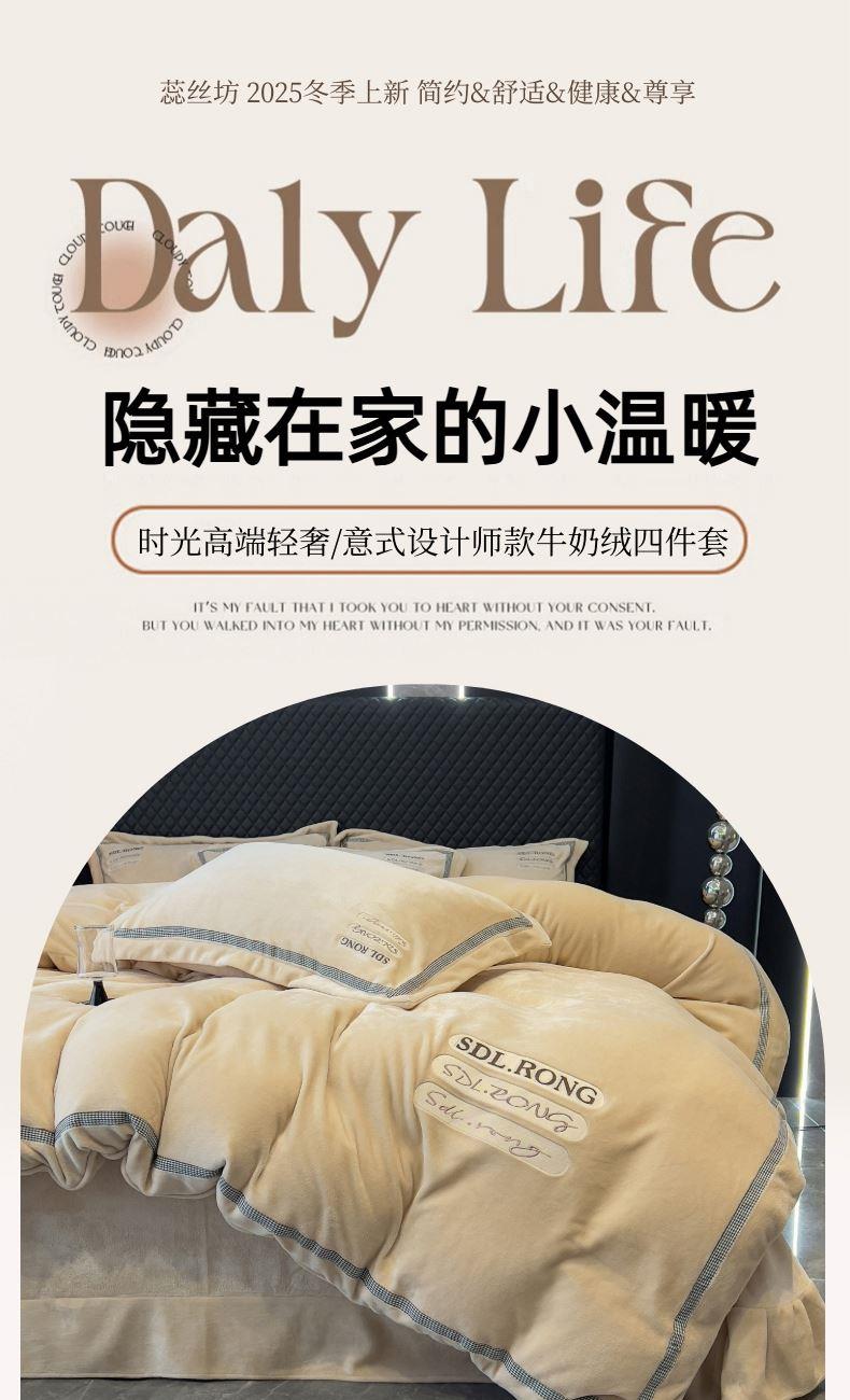 蕊丝坊家纺时光轻奢/意式设计师款牛奶绒四件套