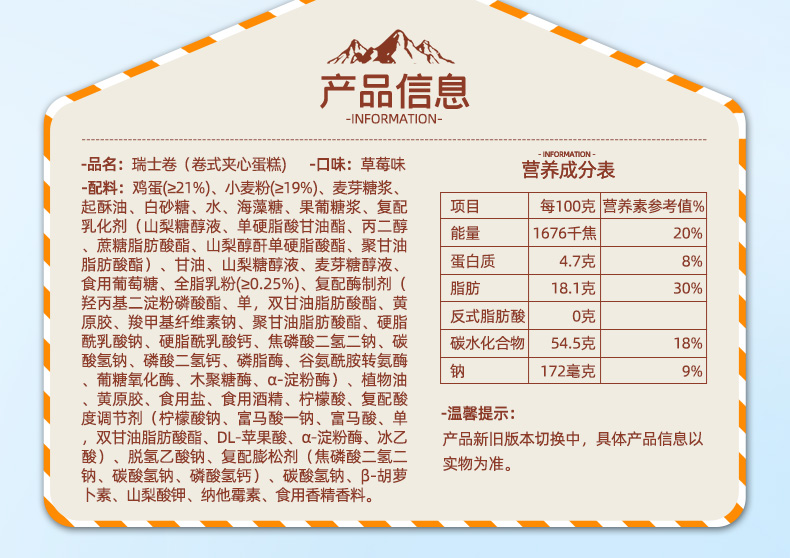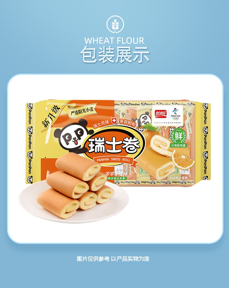 盼盼瑞士卷是一款经典的即食烘焙糕点。 它口感松软,内嵌草莓或香橙等风味的香甜注心。 产品多为独立包装或整箱销售,方便携带,可作为早餐、下午茶或办公休闲零食。 值得一提的是,它曾是北京2022年冬奥会的官方供应产品,其品质和口味受到认可。