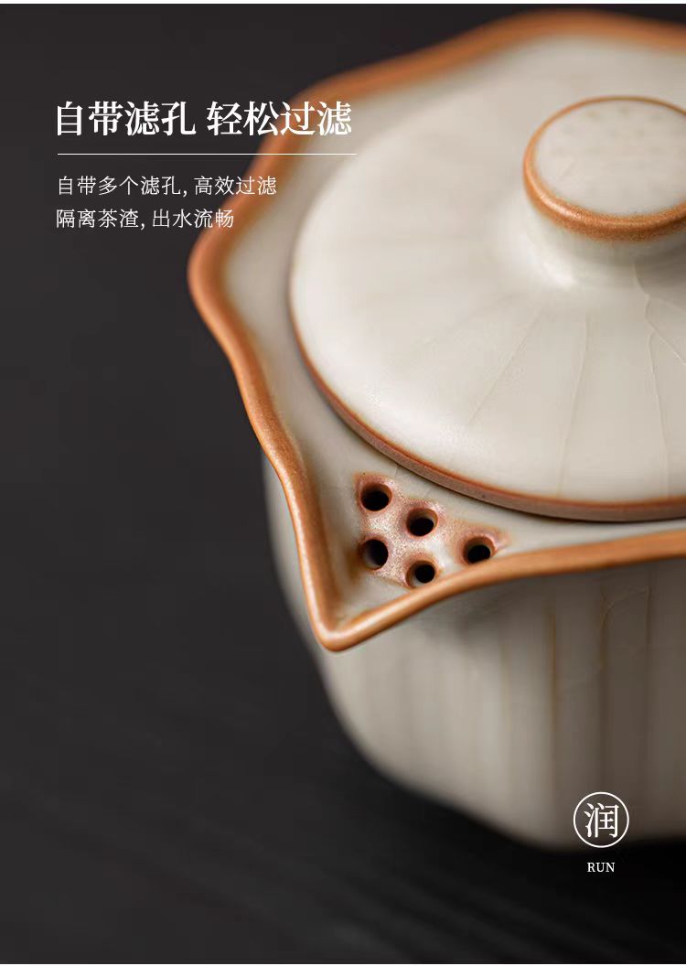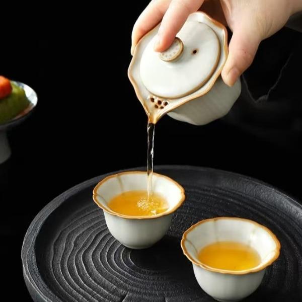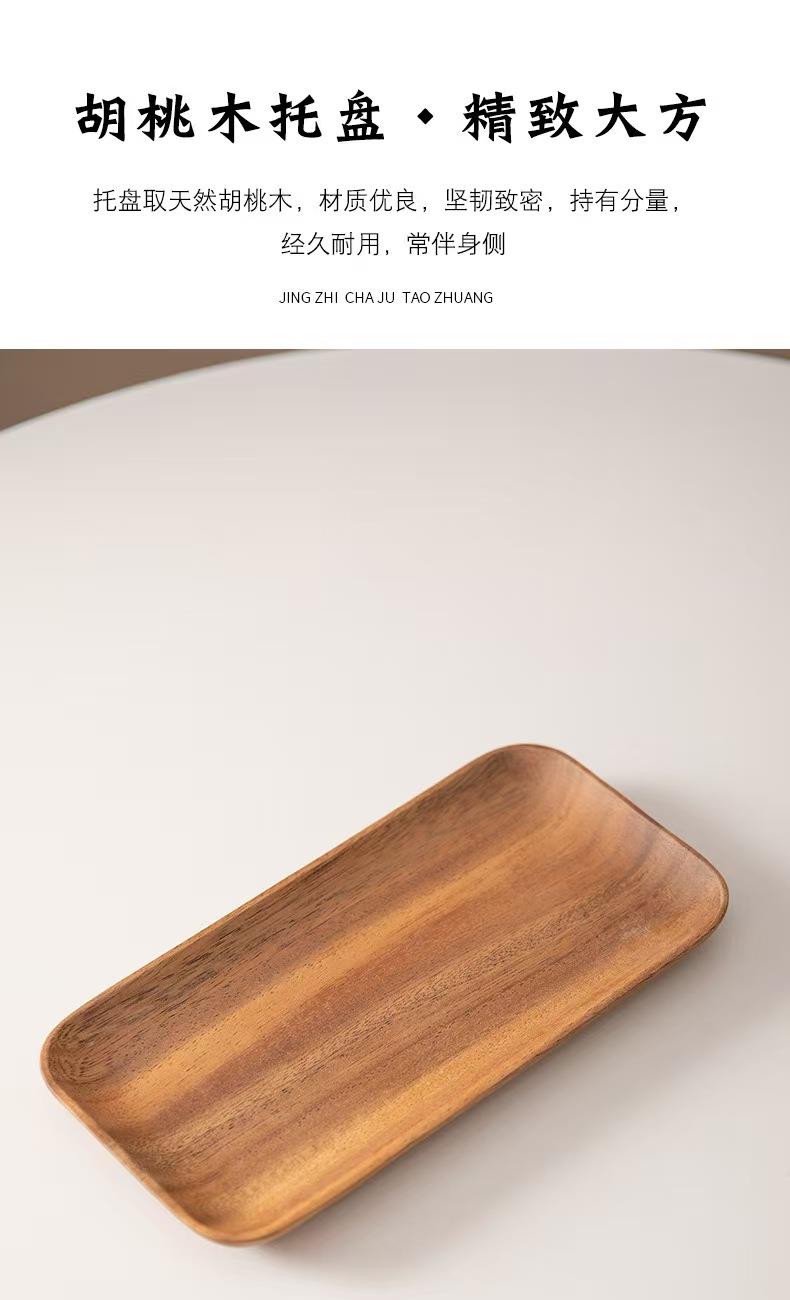 鹏翼亚黄汝窑胡桃木茶盘套装