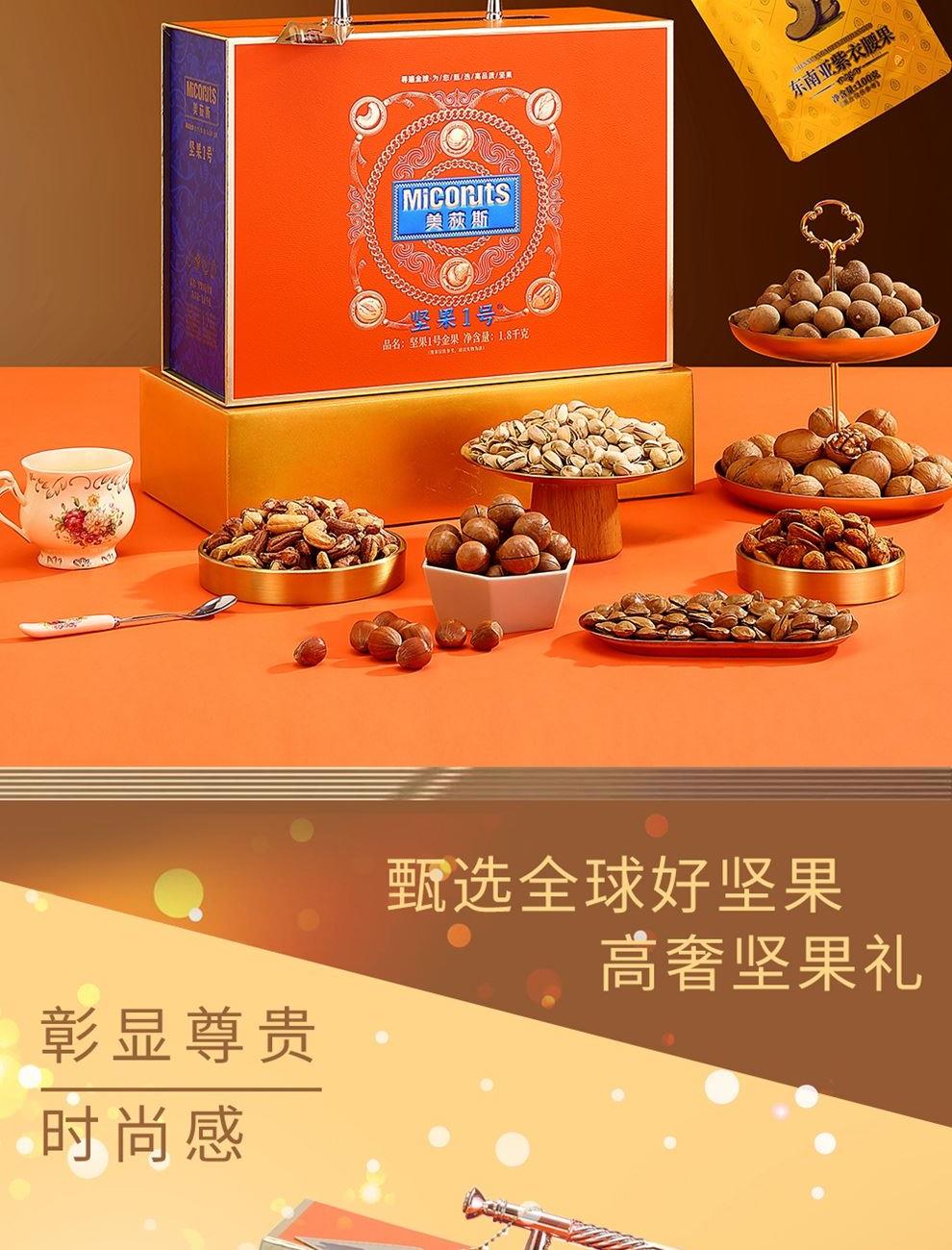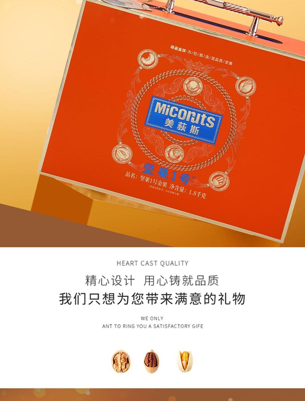 加州原色开心果 100g*1 加州NP巴旦木 100g*1 东南亚紫衣腰果 100g*1 南非夏威夷果 100g*1 北美大榛子 100g*1 手剥轻熟核桃 100g*1 笑口杏核 100g*1 智利西梅 180g*1 波斯枣 480g*1 泰国龙眼干 160g*1 东南亚黄蕉干 280g*1 合计:1800g