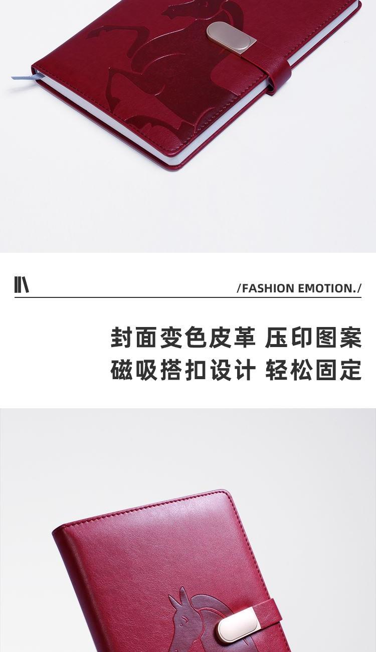 青锦2026【战马】变色皮革磁扣记事本商务会议记事办公用品