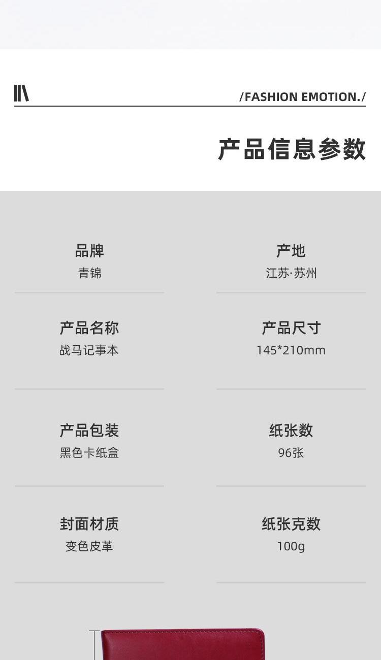 配置 记事本*1 黑卡纸盒*1 材质 变色皮革 100克太阳米黄96张 定制工艺 激光 镭射 马年专属版 尺寸 笔记本 :145*210mm 礼盒:230*152*28mm