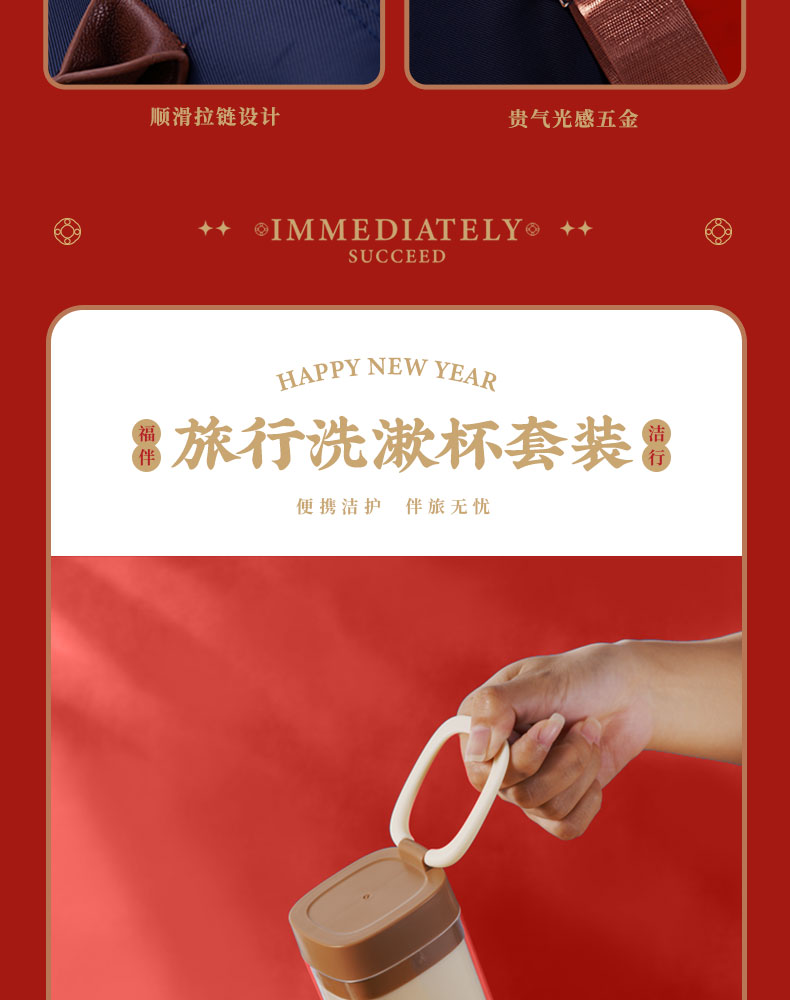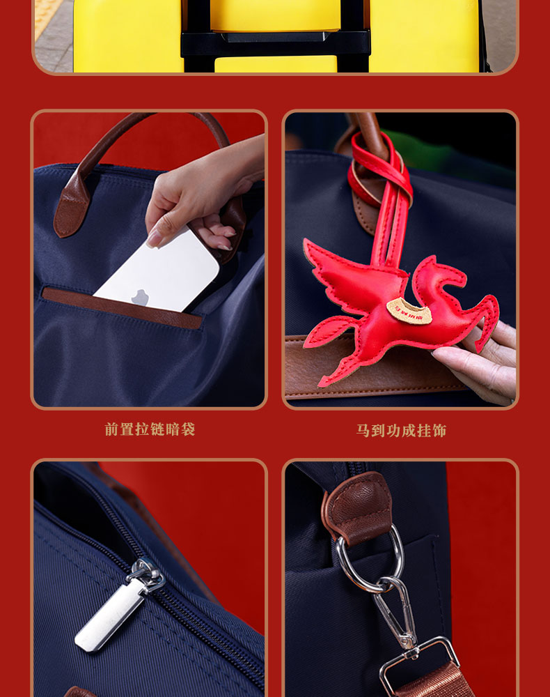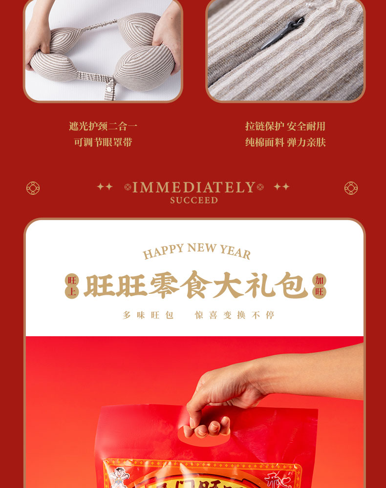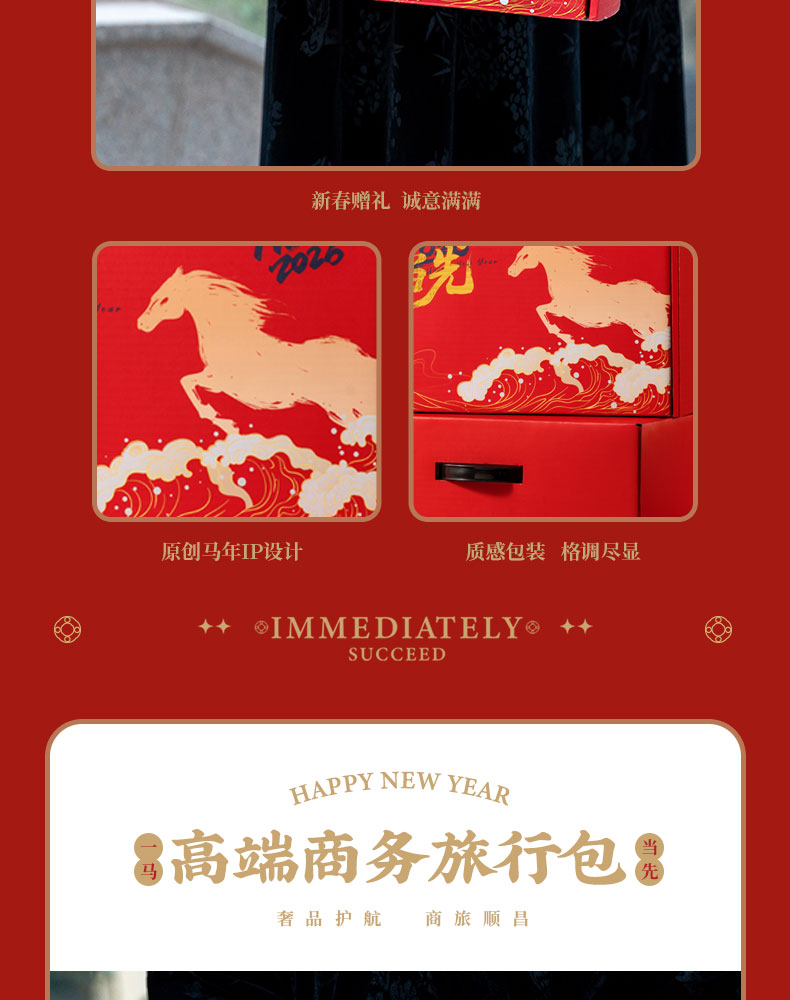 1.商务旅行包装下出行所需 2.专属飞马钥匙扣挂于包上,每一次出发都有好运随行 3.多功能枕颈,缓解奔波疲惫,让每段旅程都有舒适依靠 4.旺旺大礼包, 借“旺”的好彩头,为孩子、为全家加持一整年的好运,愿新岁事事顺、样 5.旅行洗漱杯配一次性牙刷、牙膏,不用再费心分装,高铁站、酒店用着都方便,让旅途更清爽; 6. 6个马年红包藏满新年期许
