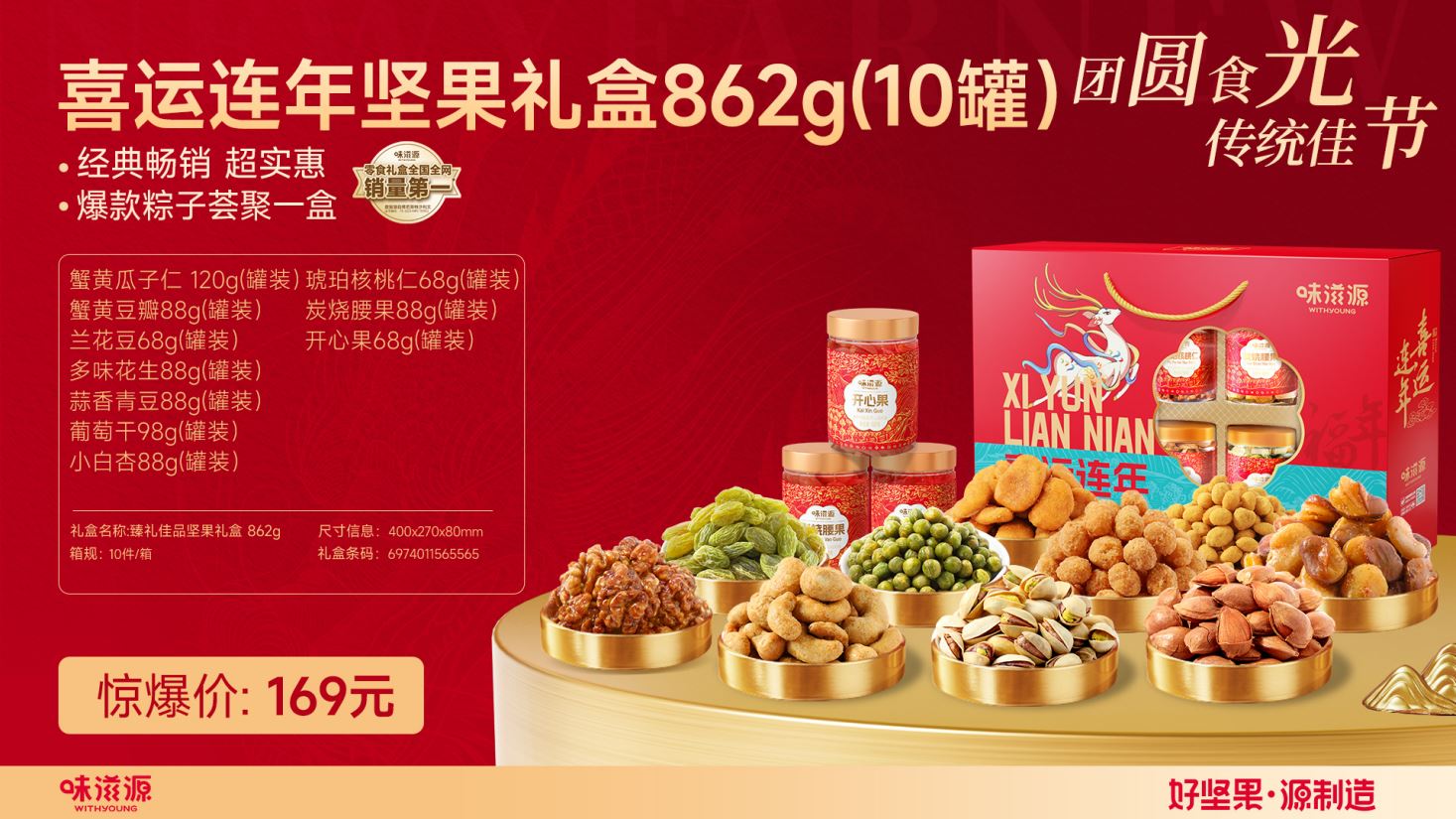 味滋源喜运连年坚果礼盒862g